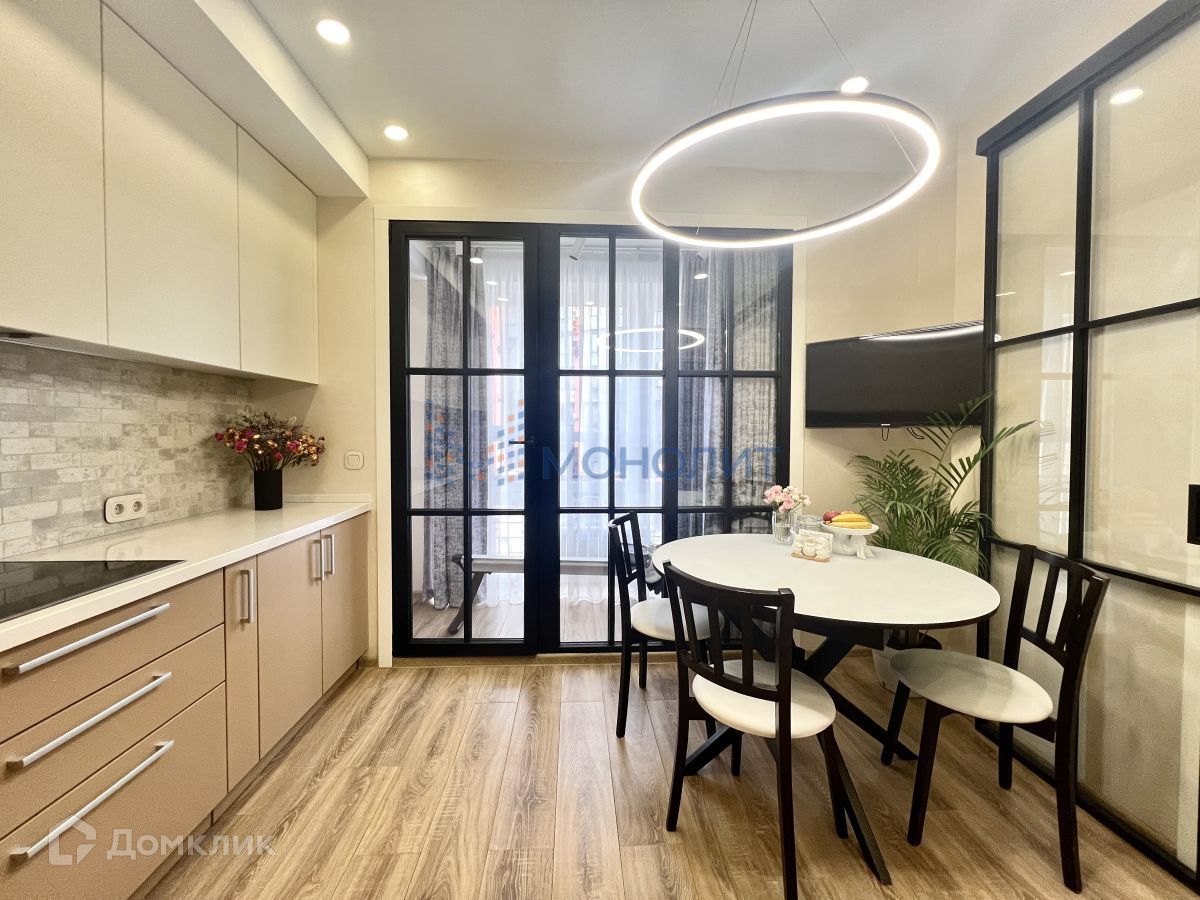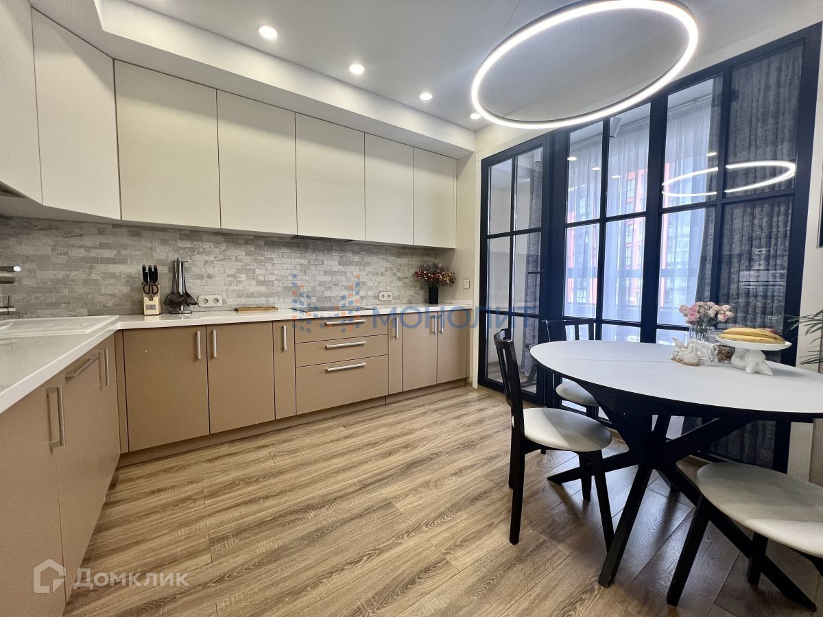 Квартира состоит из 2 спальных комнат, просторной кухни 14.4 метров с встроенным гарнитуром и техникой . гостиная и кухня , разделенны раздвижными перегородками из закаленного стекла .Раздельный санузел. В квартире сделан дизайнерский дорогой ремонт- можно сразу заехать и жить.. В стоимость квартиры входит вся встроенная мебель и техника.