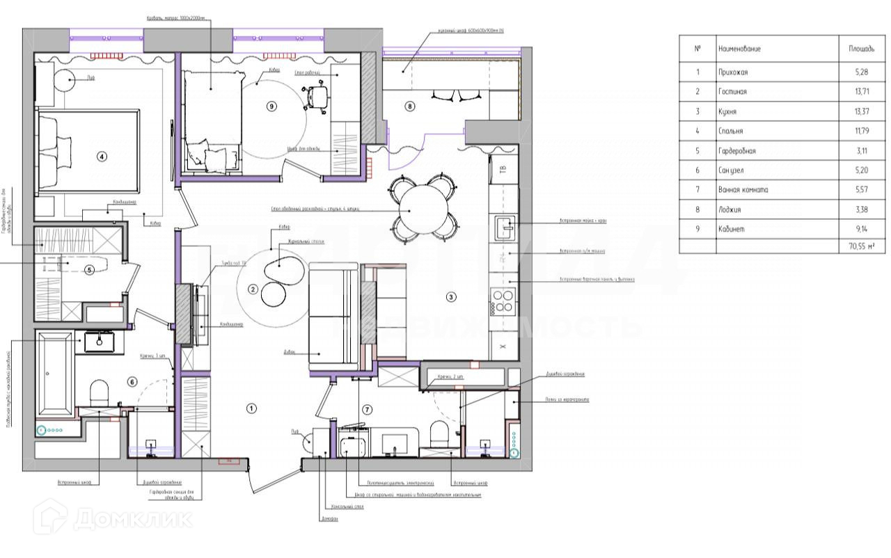 Общая площадь 70.3 м2