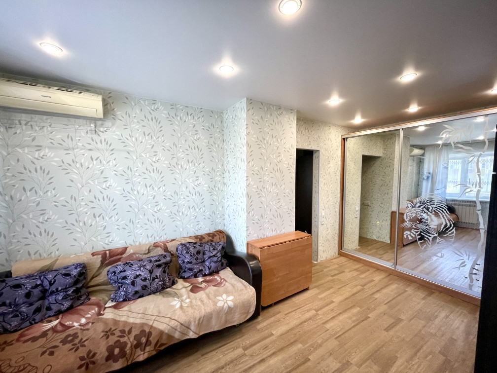 Продается уютная, теплая 3-х комнатная квартира на 4 этаже 5 этажного кирпичного дома на проспекте Ленина. Площадь квартиры с балконом 44, 5, жилая 30, 9, кухня 5, 6 кв.м. Состояние хорошее, сделан ремонт в комнатах: натяжные потолки, пластиковые окна, межкомнатные двери, в изолированных комнатах залит пол, современное остекление балкона с встроенным шкафчиком и освещением. Есть кондиционер (остаётся). Отопление, проводка и сантехника поменяны, установлены счетчики на воду и электричество. Сан/узел совместный, требует ремонта, сантехника уже поменяна. На кухне новая колонка (не будет летнего 2 недельного отключения воды), новая газовая плита с духовкой. Подъезд чистый, 2 года назад проведен капитальный ремонт, поменяли все коммуникации, проведен ремонт крыши и фасадов. Благополучные соседи.