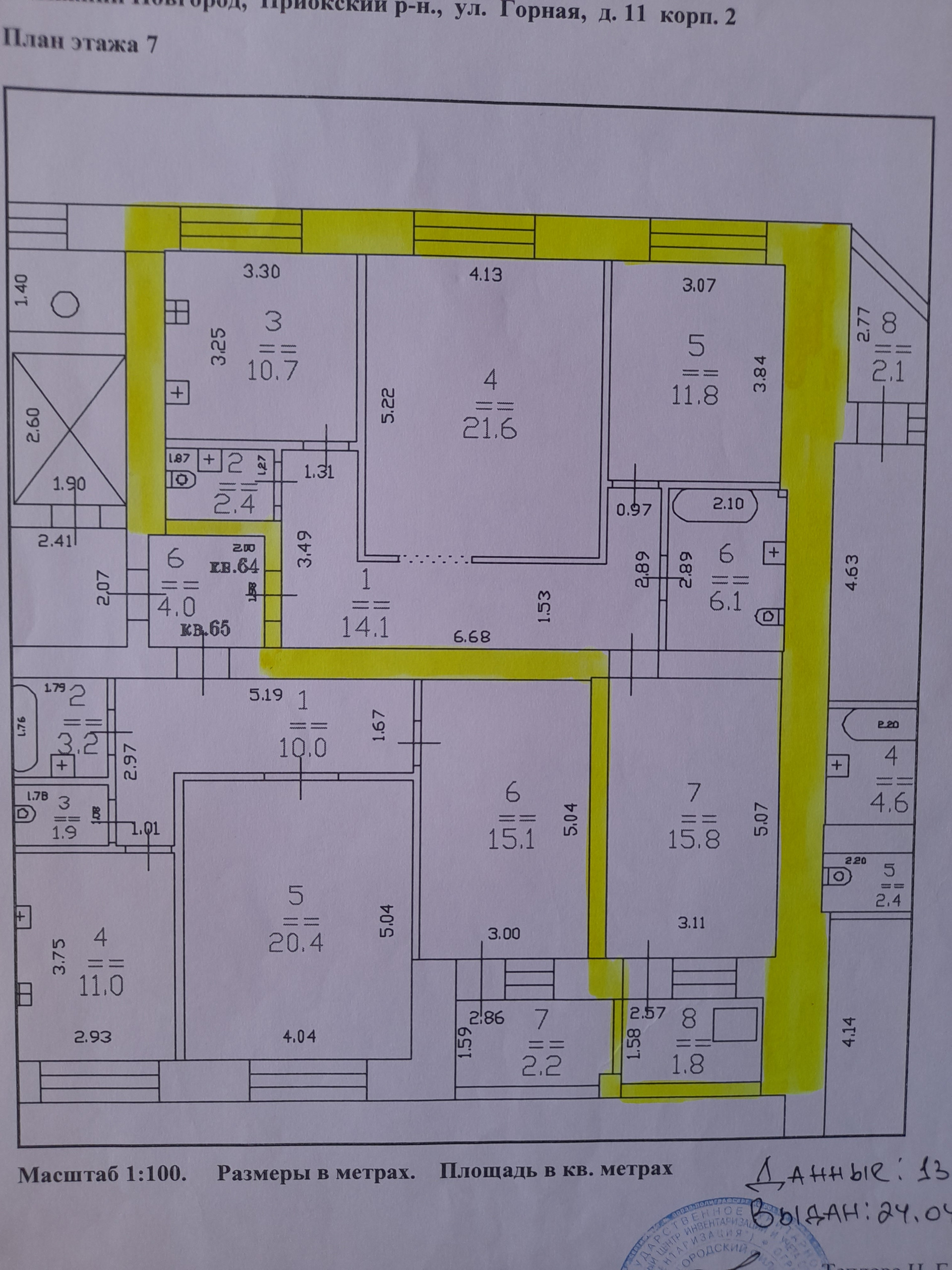 Общая площадь 82,5 кв.м. (без учёта глубокой лоджии - 3.6 кв.м.) Изолированные комнаты: 21,6; 15,8 и 11,8 кв.м. Большая квадратная кухня 10,7 кв.м. Два санузла.