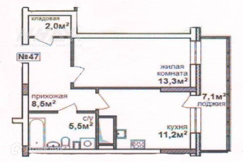 Общая площадь 44.5 м2