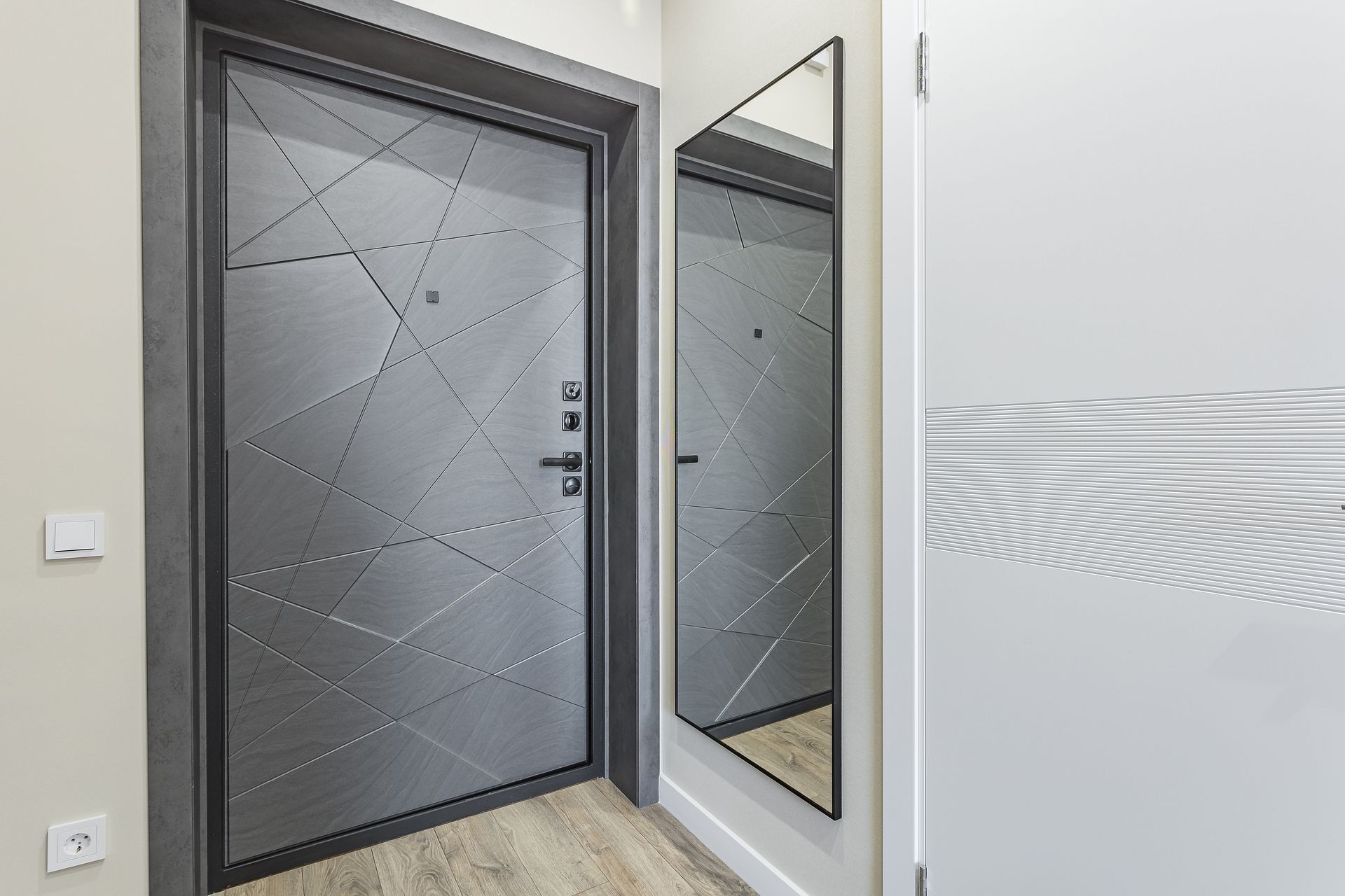 В квартире дорогая входная дверь Аргус Премиум, на полу влагостойкий ламинат My Step Terra Aqua Block 33-й класс. Электрика с проходными выключателями Schneider Electric и большое количество розеток продуманы до мелочей.