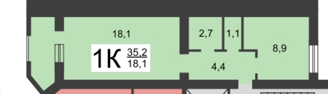 Общая площадь 36 м2