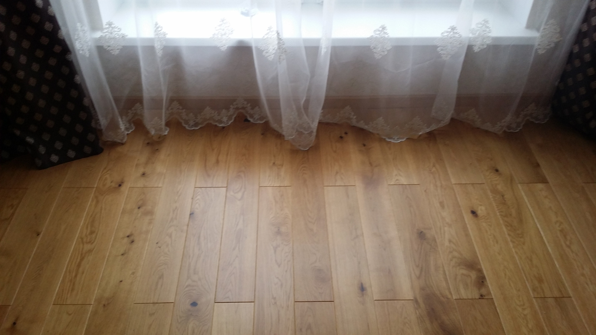 Напольное покрытие - дубовая паркетная доска, уложенная одним массивом, без порожков.