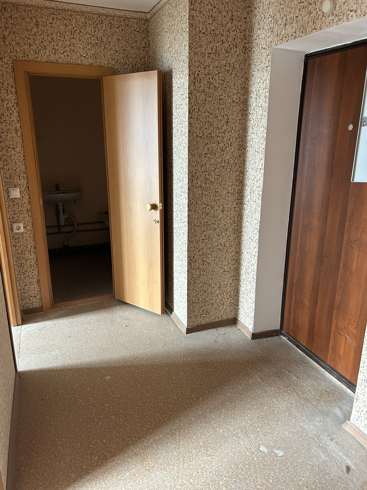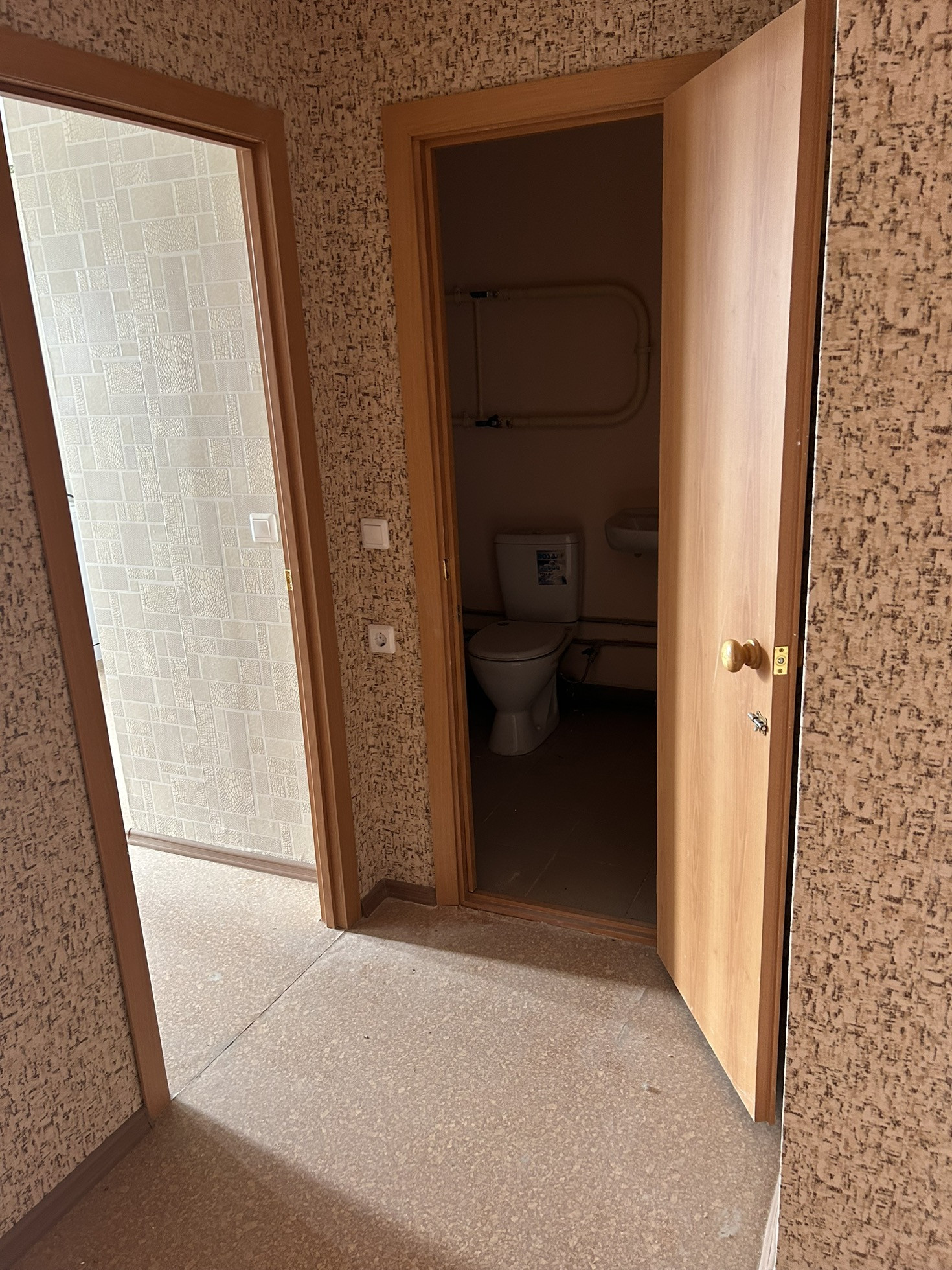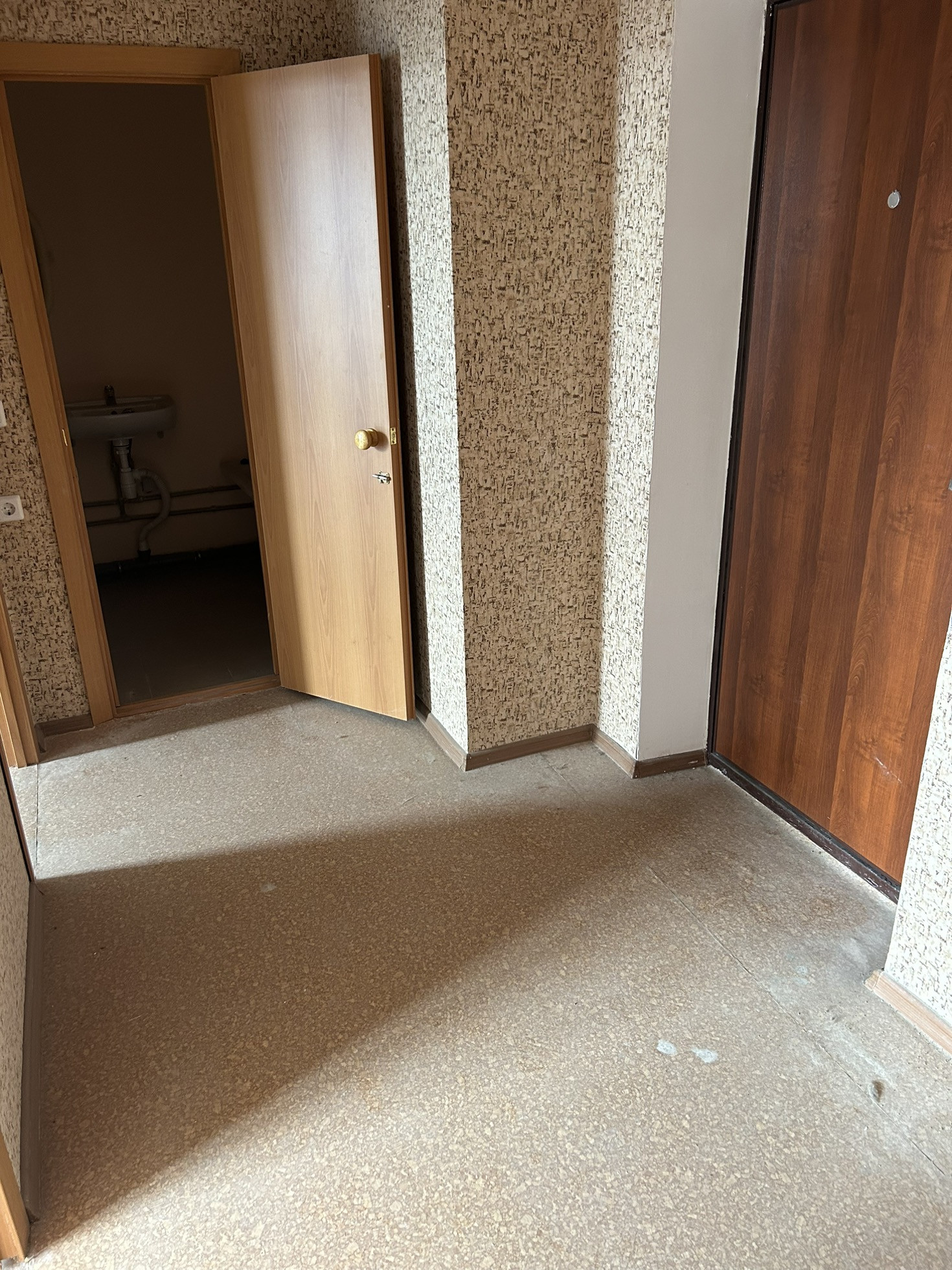 -Общая площадь квартиры-33,8 м,кухня -7,5м,с/узел совмещен,большая квадратная прихожая.