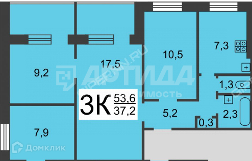 Количество комнат 3