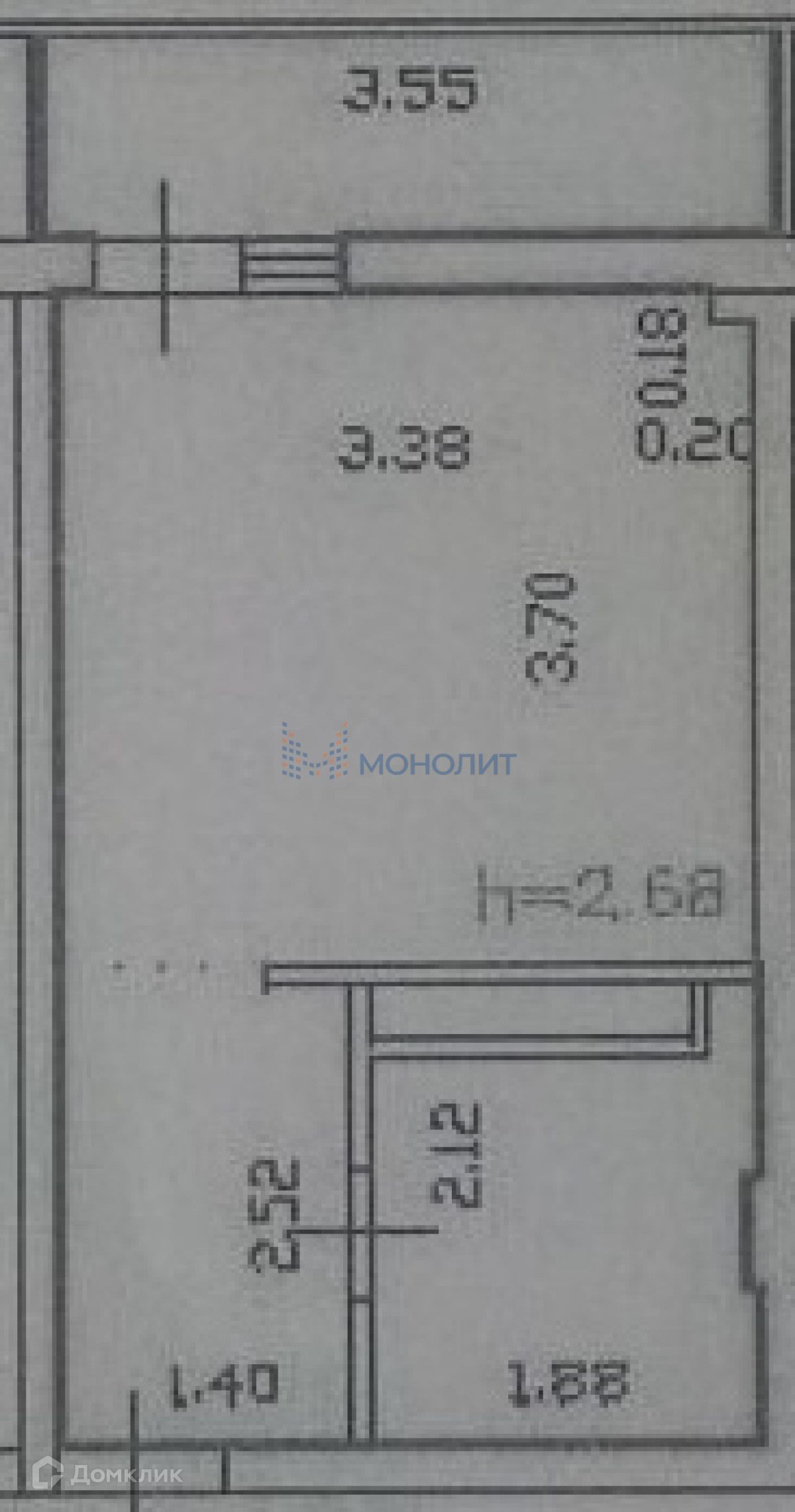 Высота потолков 2.68 м