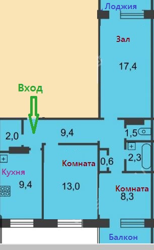 Площадь кухни 9.4 м2