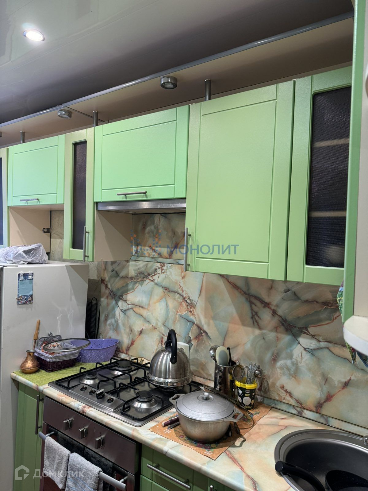 В прихожей встроенный шкаф.Остается кухонный гарнитур,