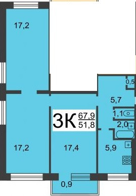 Общая площадь 67.9 м2