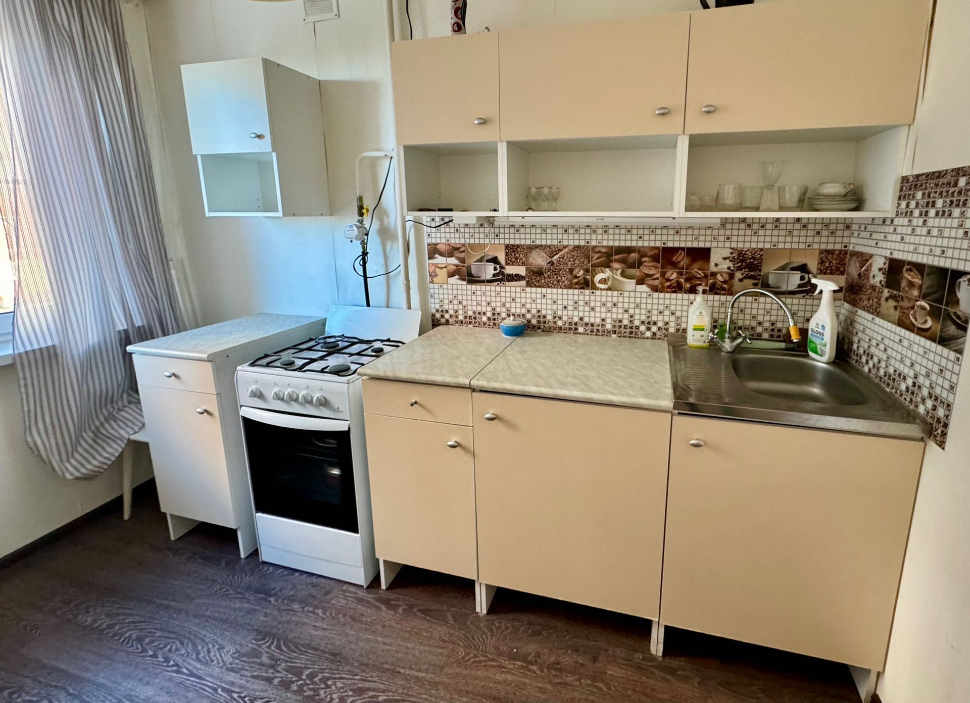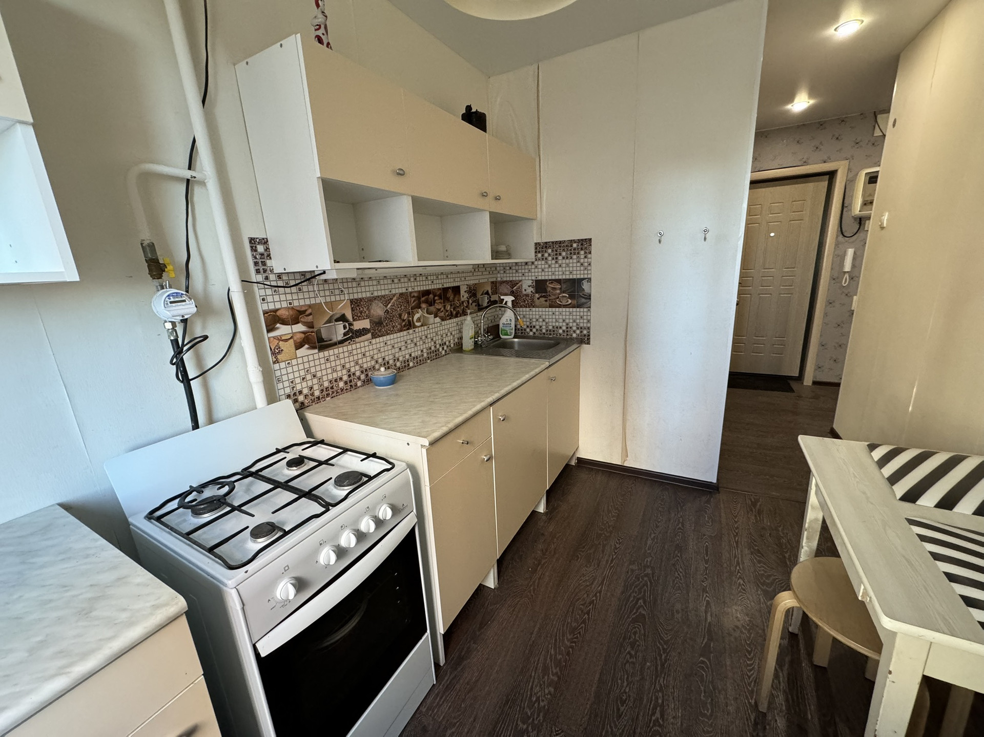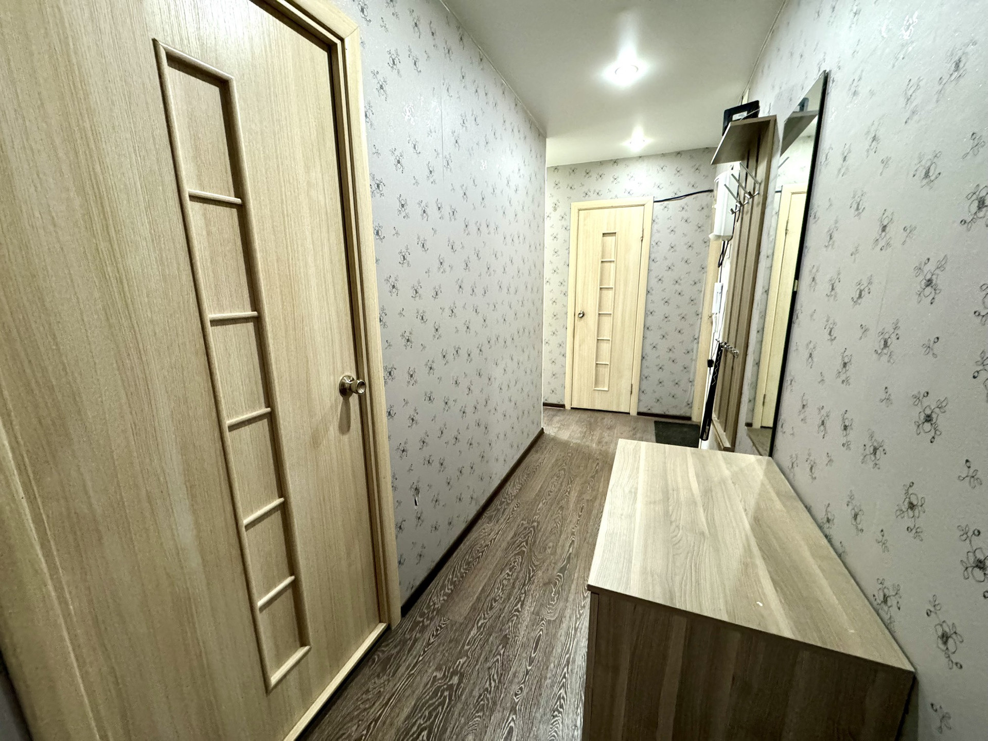 ☑️ Состояние квартиры: окна частично пластиковые, стены и полы выровнены, на полу постелен линолеум , в сан.узле плитка, натяжной потолок, новая входная дверь. В квартире остается кондиционер, по договоренности мебель.