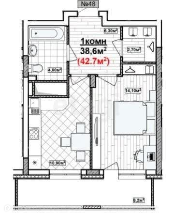 Общая площадь 42.7 м2