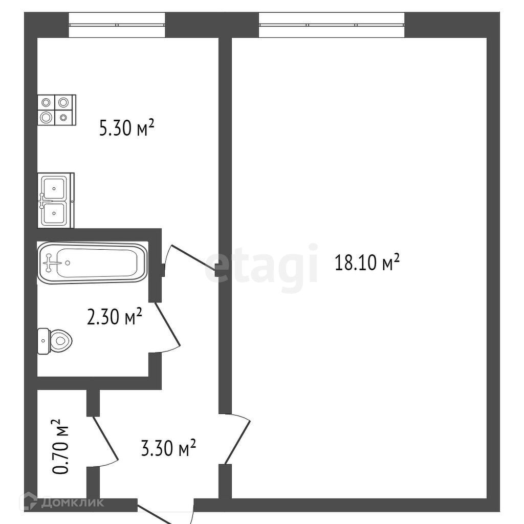 Общая площадь: 29,2 м²