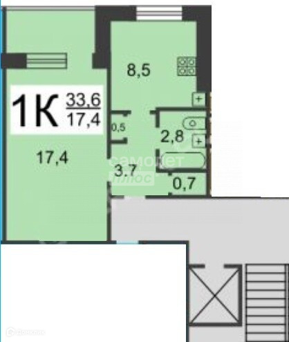 Общая площадь 33.5 м2