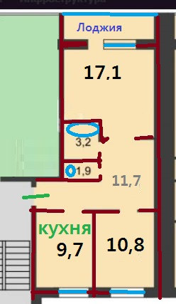 Площадь кухни 9.7 м2
