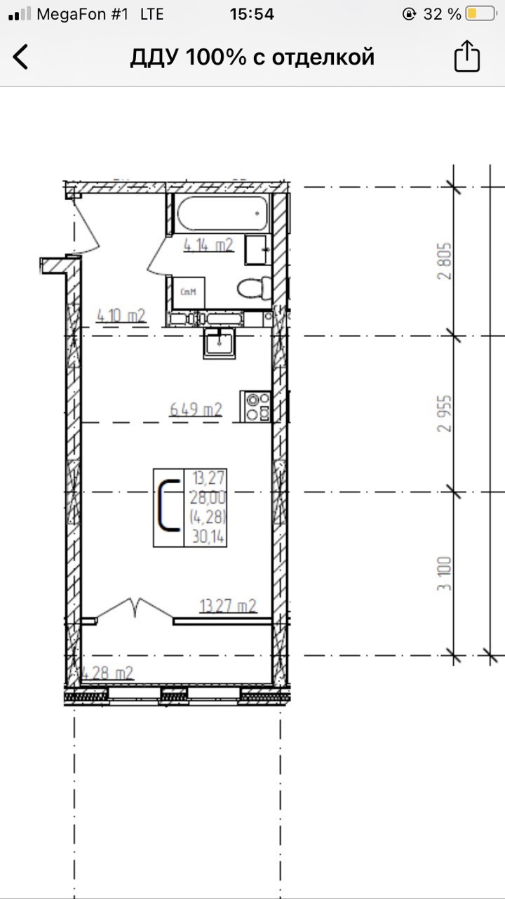 Общая площадь 30 м2