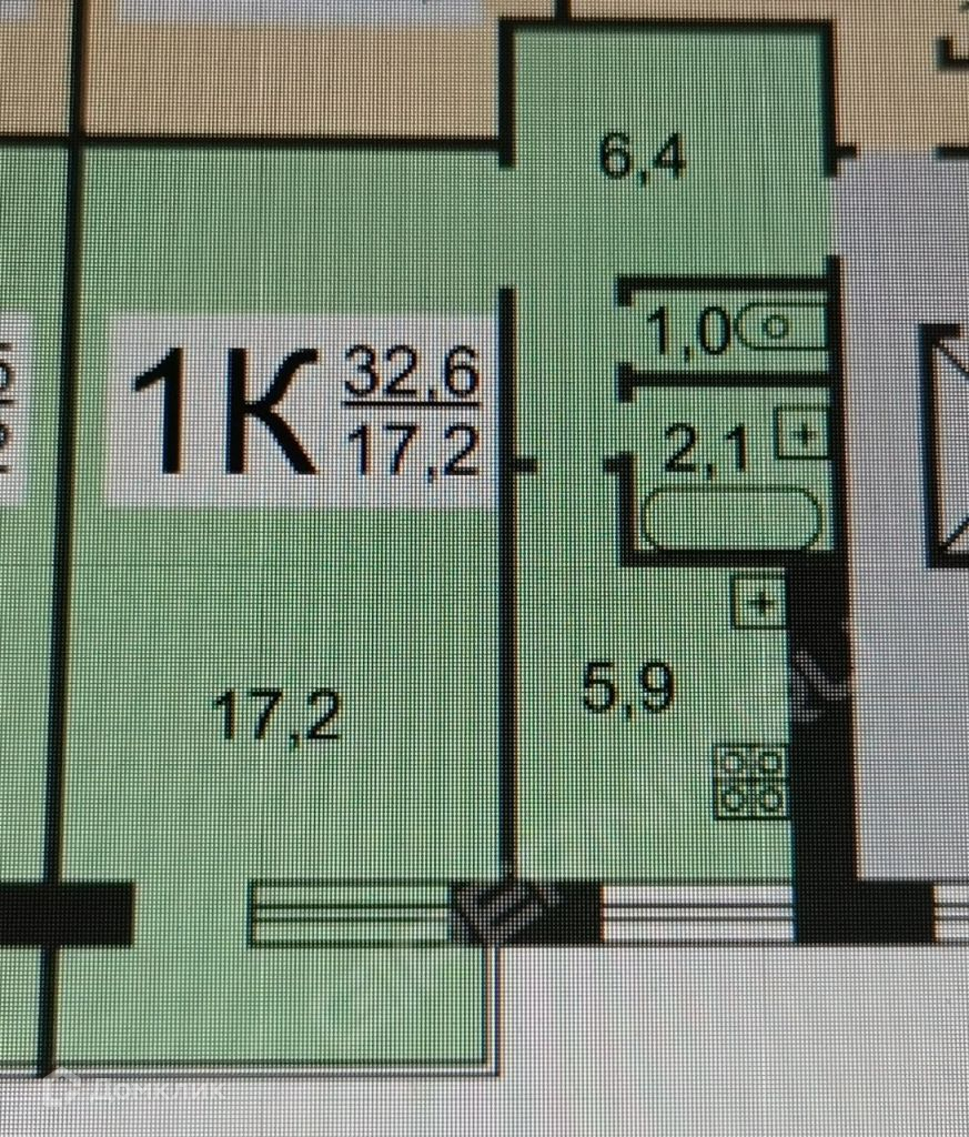 Общая площадь 32.5 м2