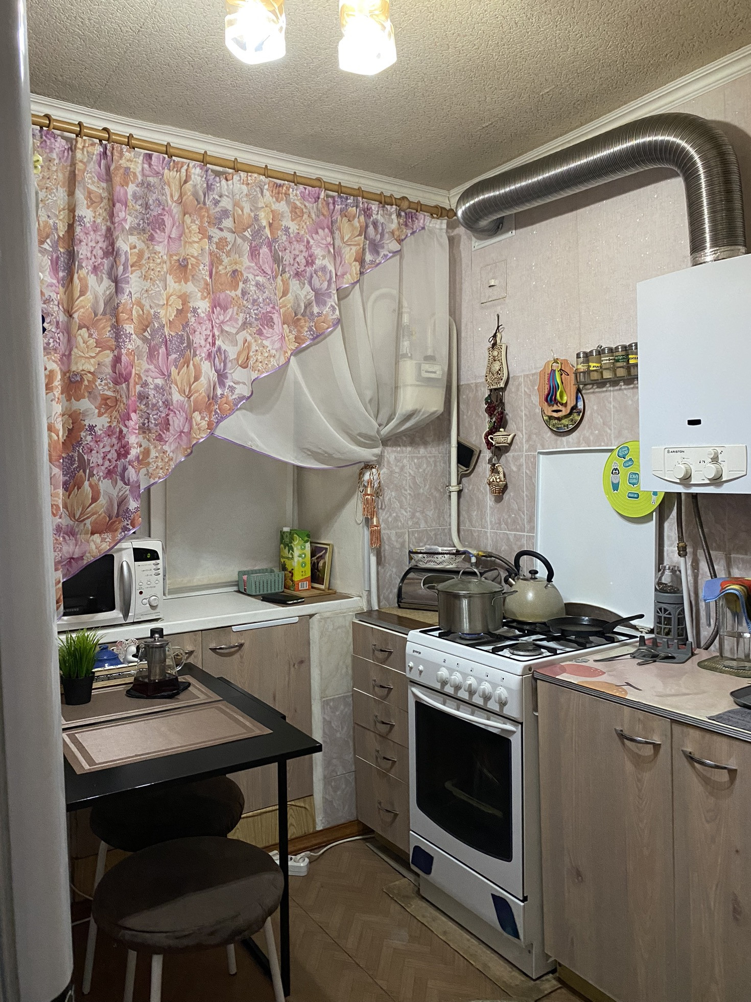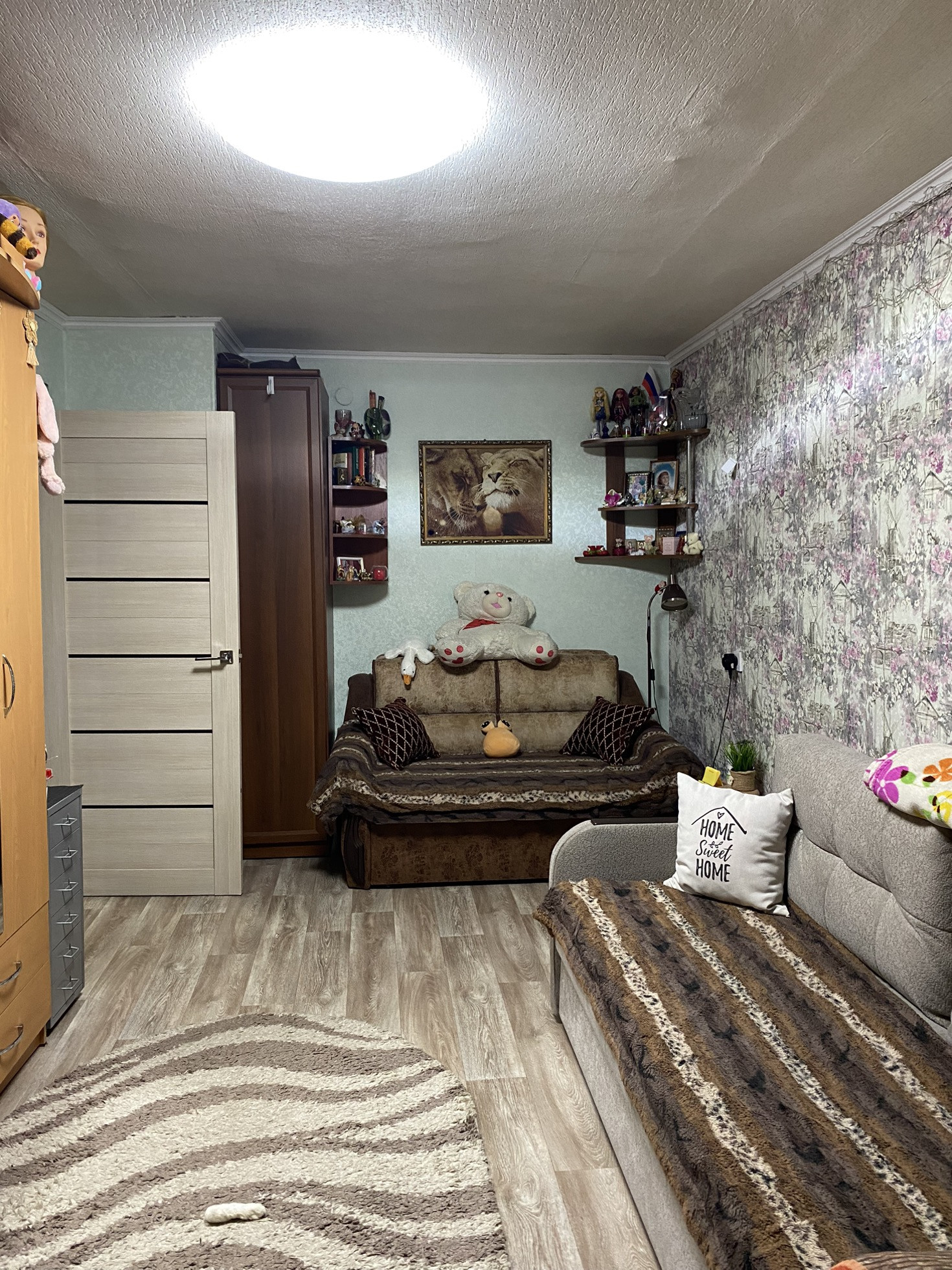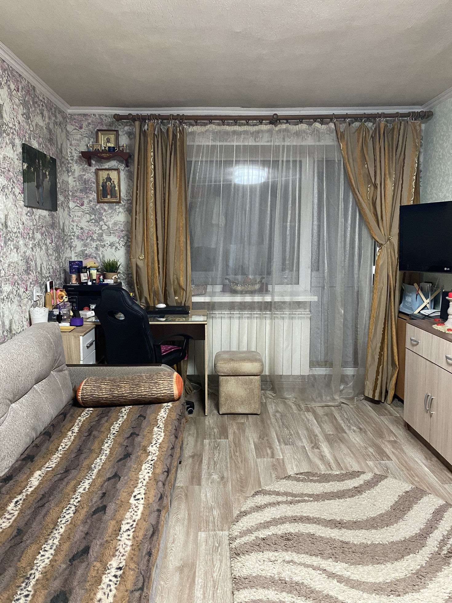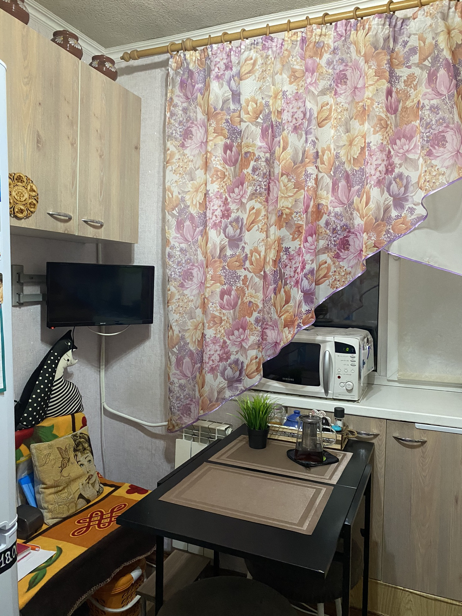 Косметический ремонт.  С/у совмещенный,  окна пластиковые, балкон застеклен  год назад  , с него красивый вид на верхнюю часть города.