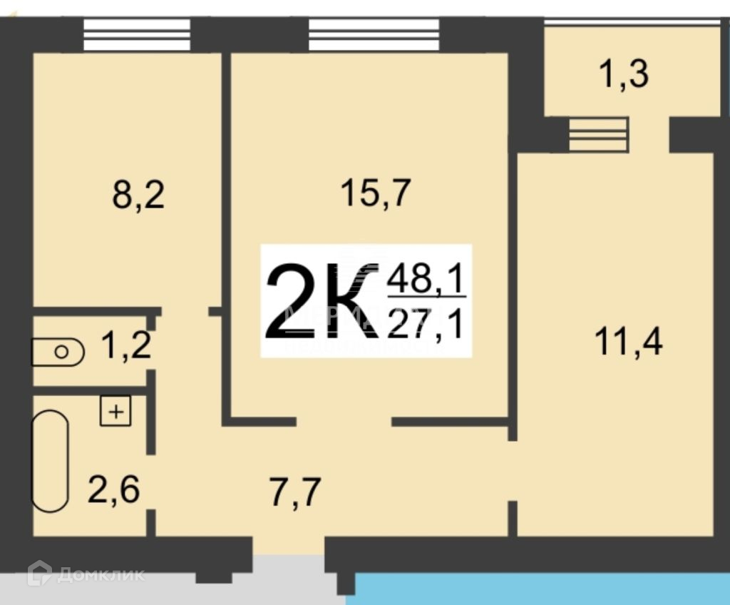О КВАРТИРЕ: Общая площадь 48.4 кв.м