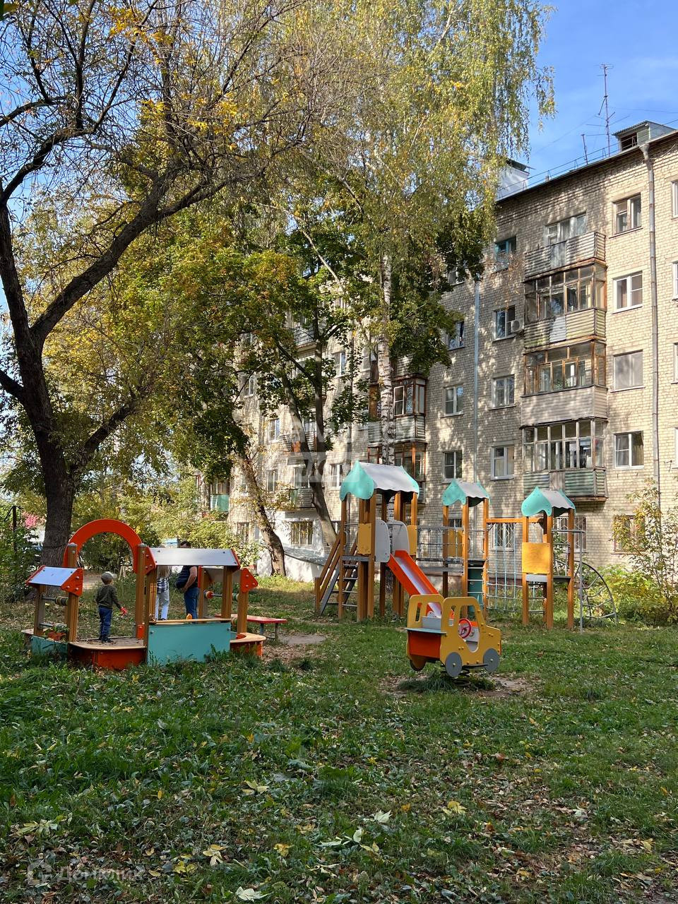 Красивый вид из окон на многолетние деревья и новую детскую площадку. Широкие подоконники (можно реализовать зимний сад из декоративных растений).