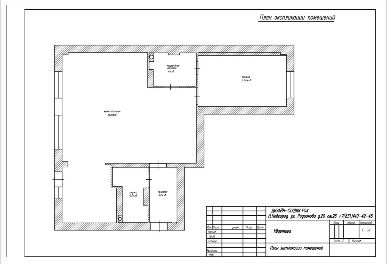 Жилая площадь 45.4 м2