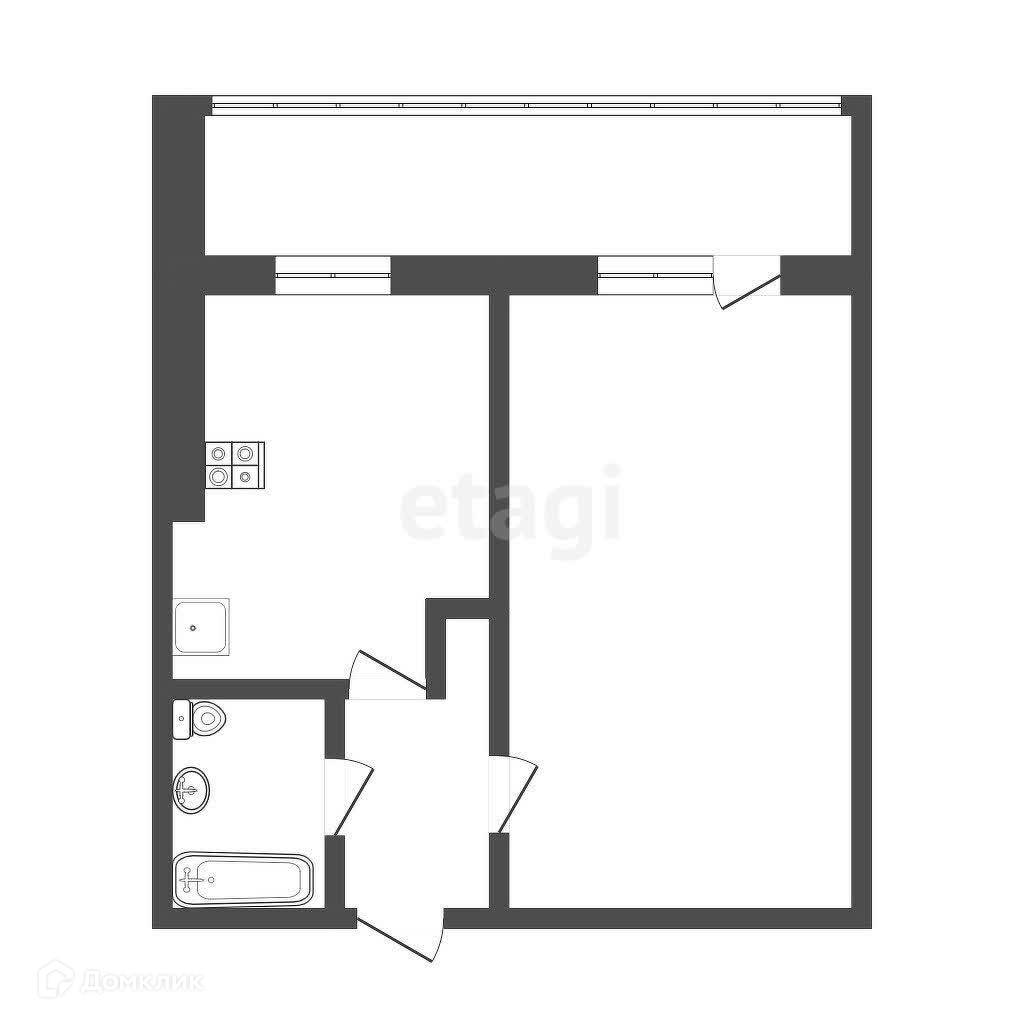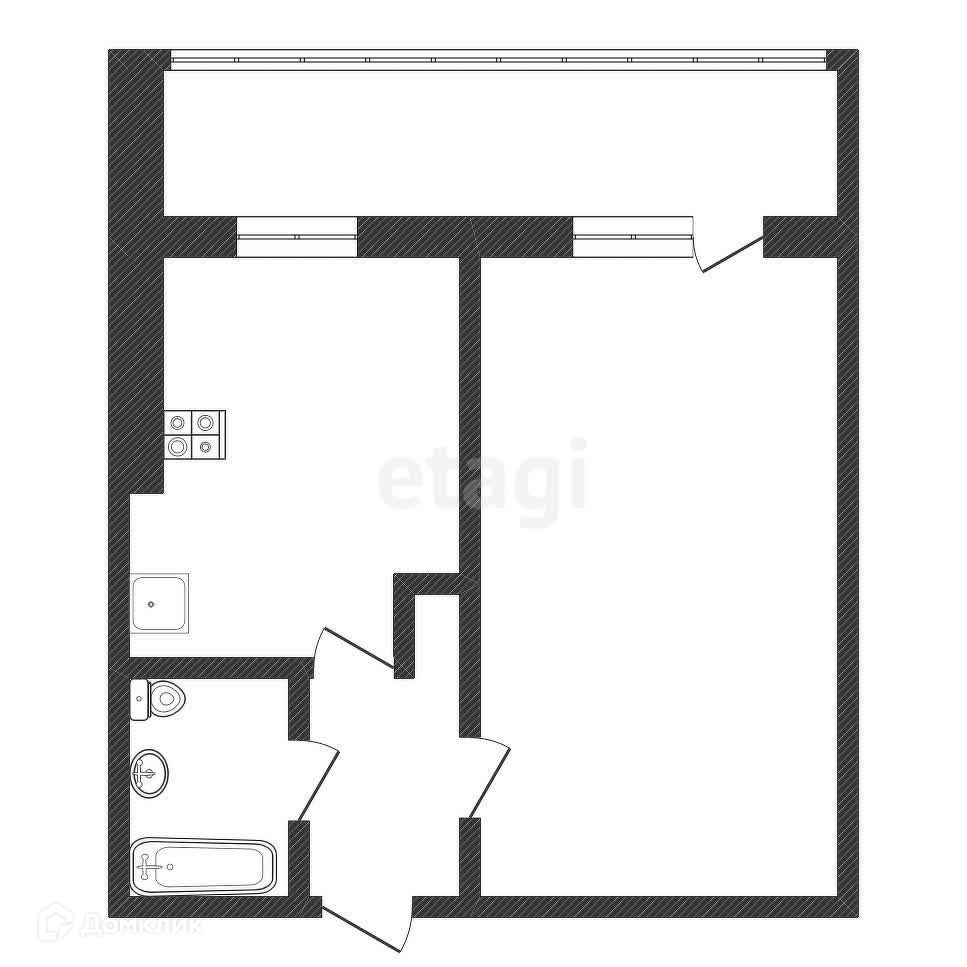 При входе в квартиру вы попадаете в небольшой коридор, откуда открывается доступ в основное помещение. Просторная комната с большими окнами наполняет пространство естественным светом, создавая уютную атмосферу. Высокие потолки визуально увеличивают пространство, а нейтральные стены предоставляют возможность для реализации любых дизайнерских решений.