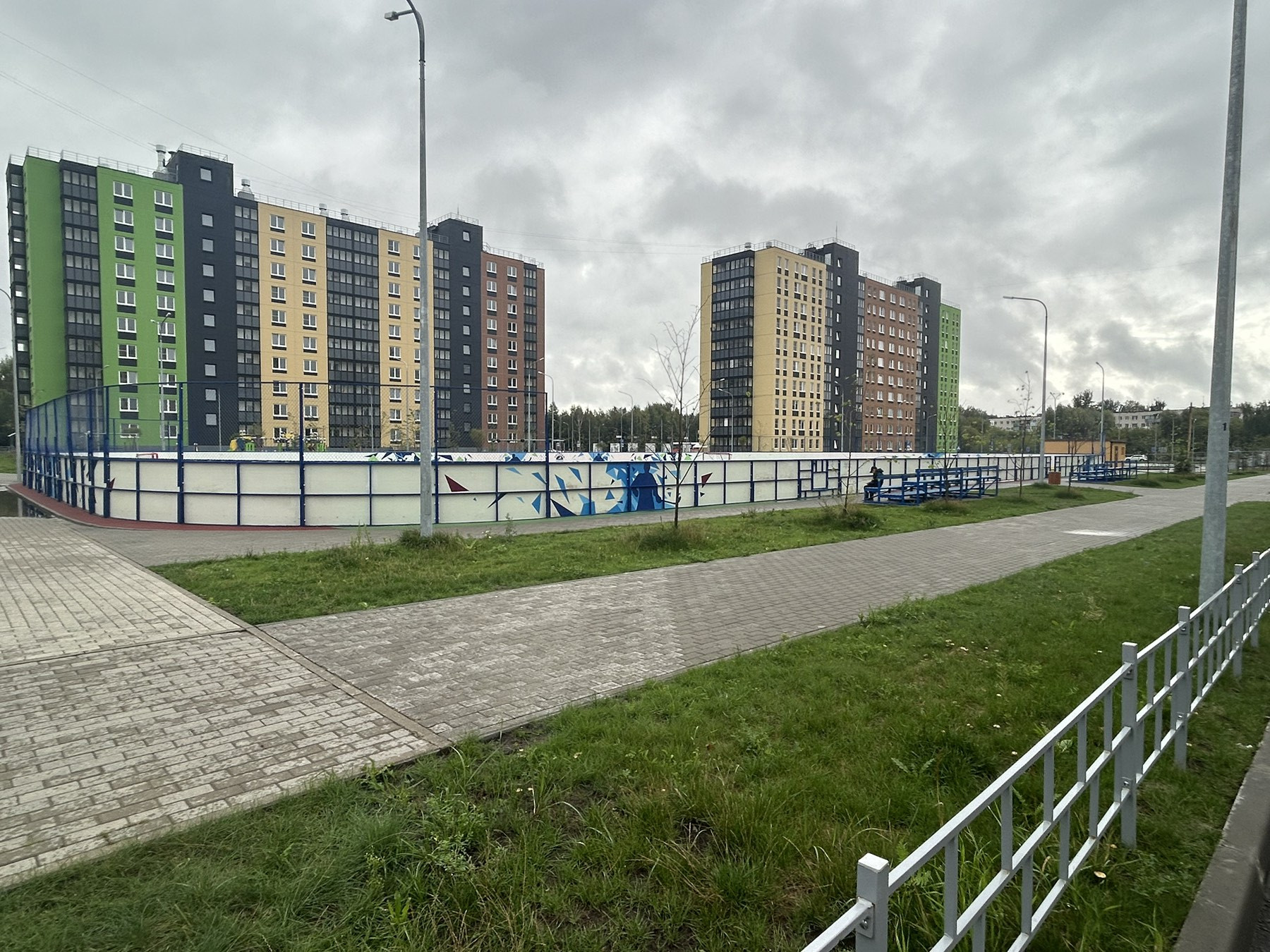 Новый, современный благоустроенный микрорайон, просторная парковка с большим количеством парковочных мест. Территория оборудована для детей