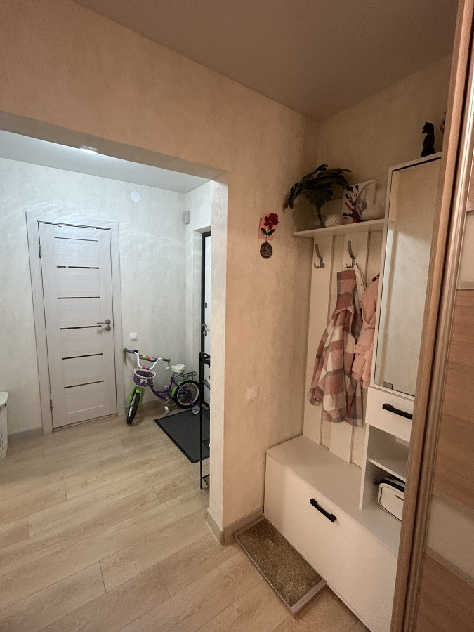 В квартире остается кухонный гарнитур и большой вместительный шкаф в прихожей