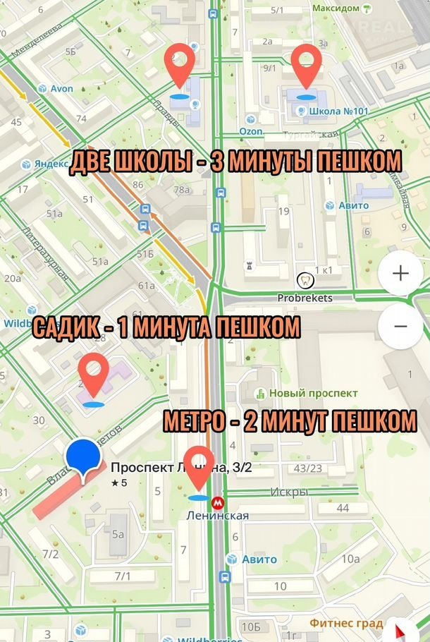 Прекрасная транспортная развязка: 2 минуты до метро Ленинская и автобусной остановки.