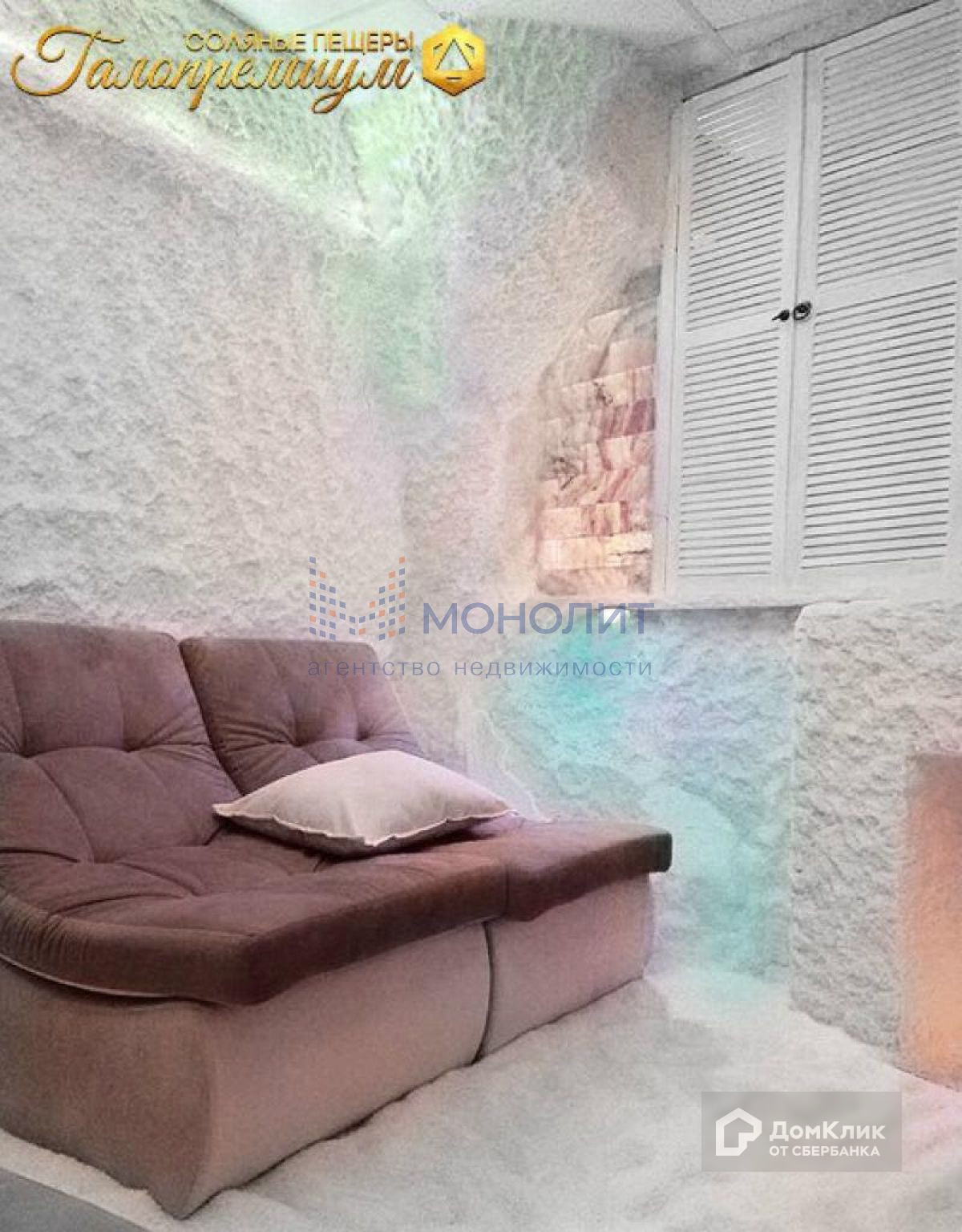 3. Галокамера, вместимостью до 6 человек за один сеанс, стены выполнены из розовой гималайской соли и морской Израильской соли.