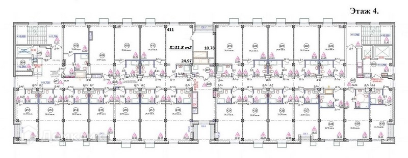 Предложение: апартаменты на 4-ом этаже.  Общая площадь 41,82  кв.м. Состоит из двух комнат 24.79 кв.м., 10.78 кв.м. и сан.узла.  Наличие всех коммуникаций.  Помещение продается без отделки. В здании четыре лифта. Охрана на первом этаже. Парковка.", N104377