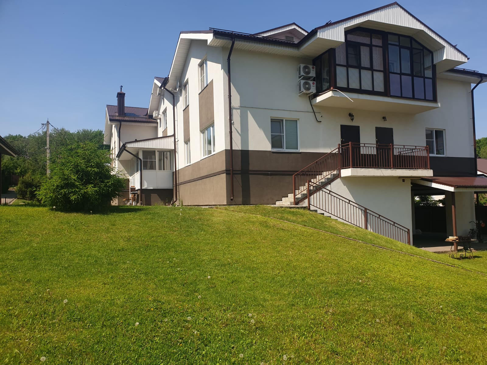 Дом находится в закрытом коттеджном поселке. Территория полностью благоустроена, в поселке  есть  детская игровая площадка, ночное освещение, пропускная система проезда, автоматический шлагбаум, круглосуточная охрана и видео наблюдение.