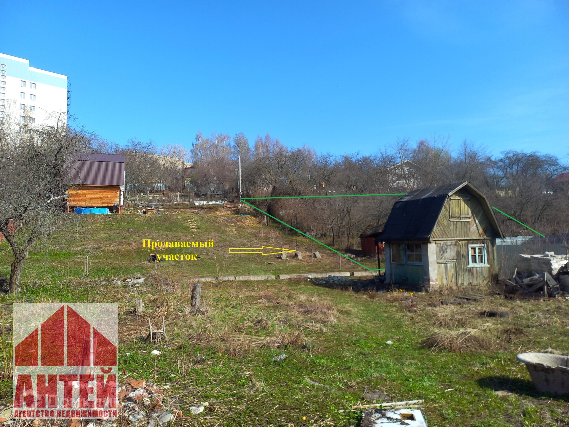 Участок правильной прямоугольной формы. На участке электричество, центральное водоснабжение, более 20 плодовых деревьев.