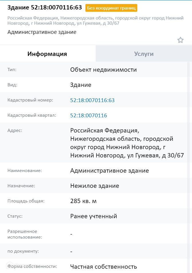 Площадь участка 457 кв.м (4, 57 сот.). На участке расположена зарегистрированная постройка 1917 года площадью 285 кв.м.