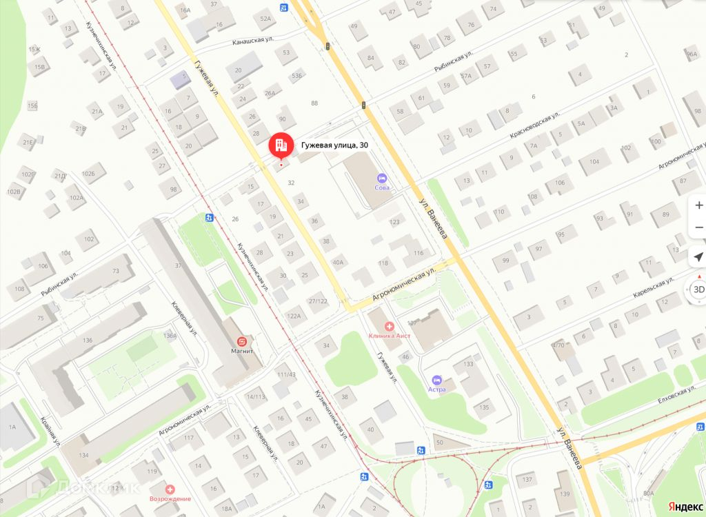 Отличная инфраструктура. Рядом расположен отель- ресторан Сова, остановка общественного транспорта, трамвайная остановка, улица Ванеева.