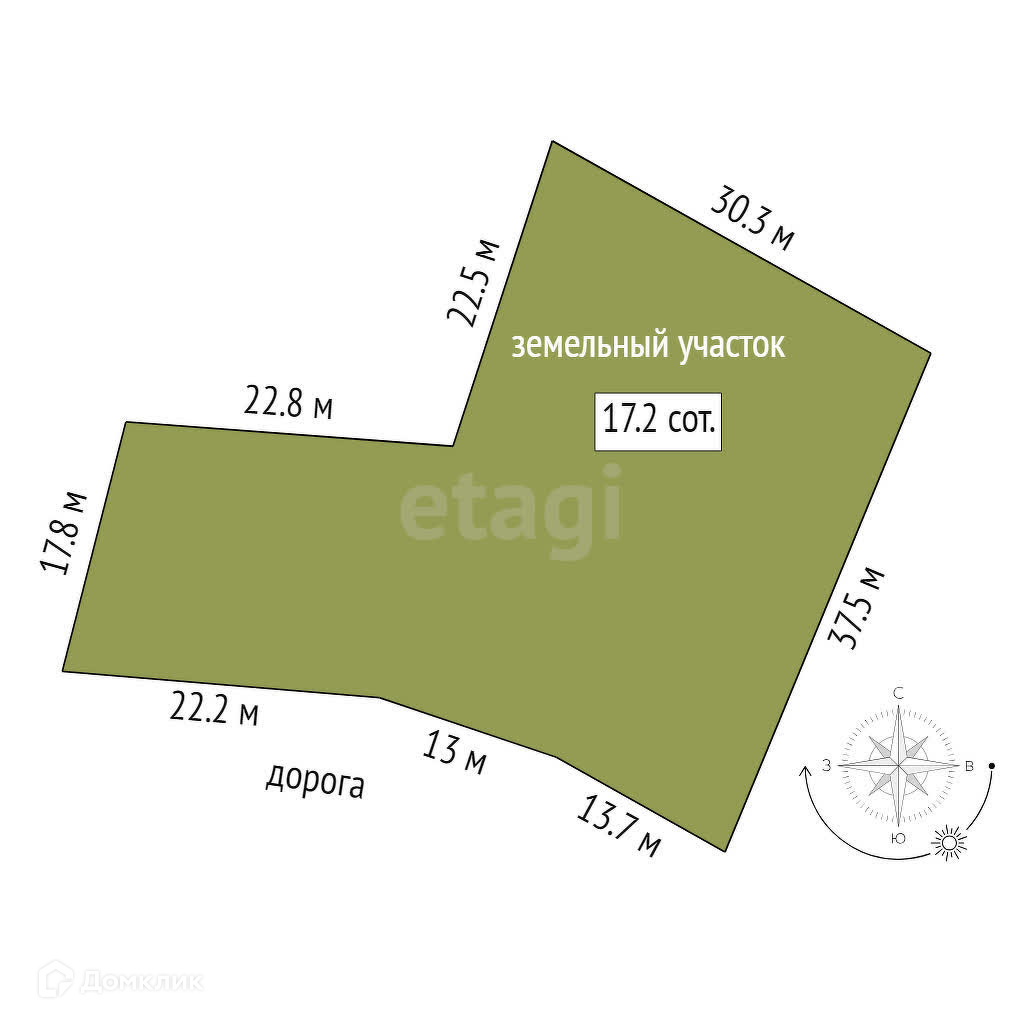 Площадь участка 17 сот.