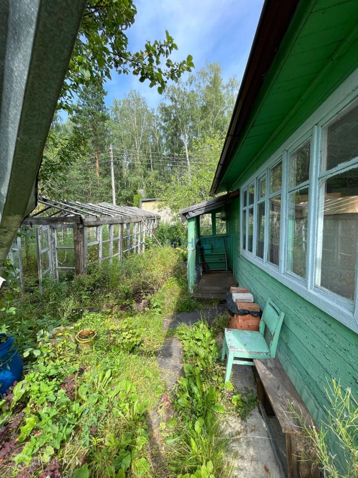 2 сарая,.2 теплицы из стекла,баня.