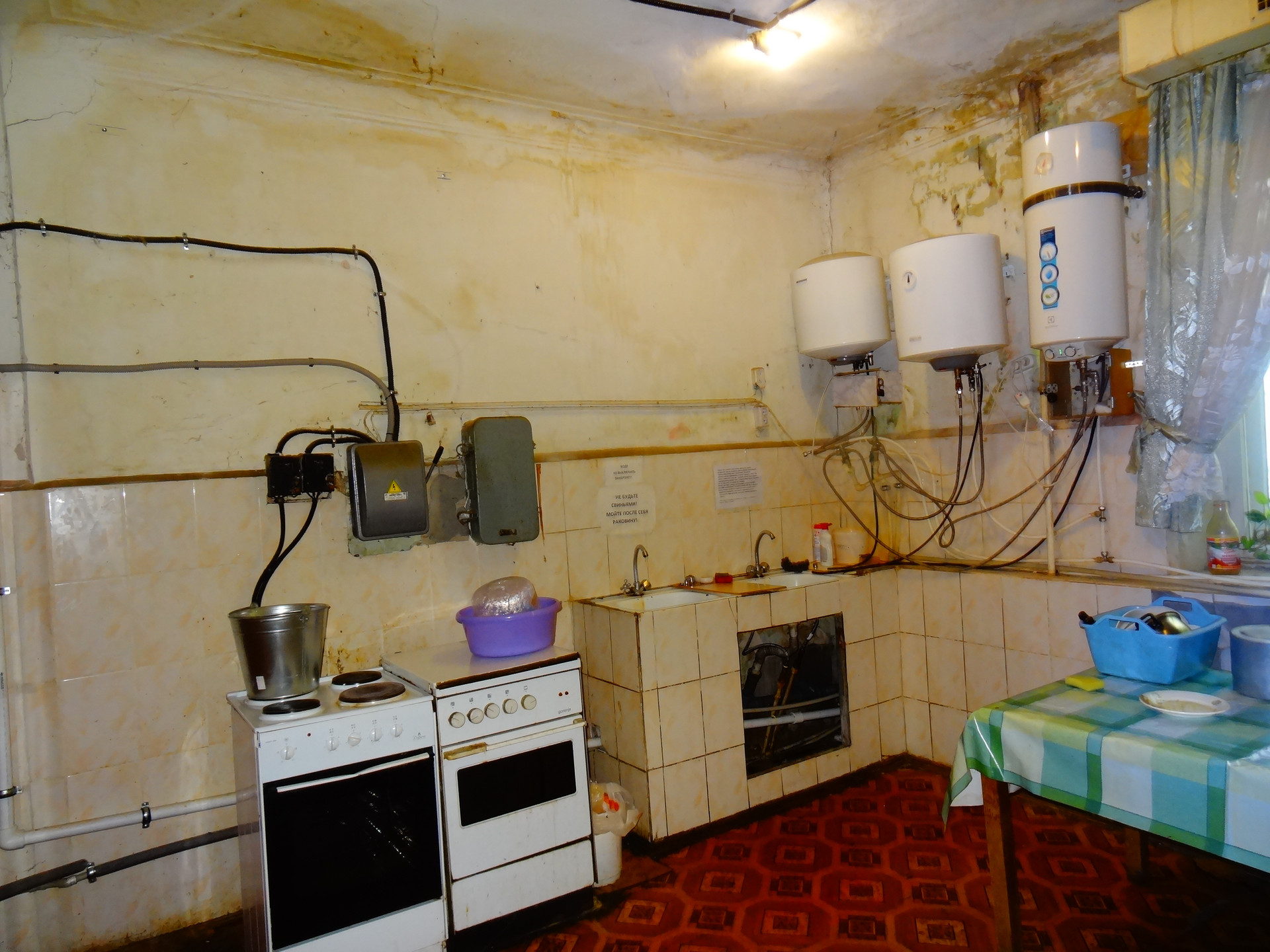 Общая кухня на 8 соседей. Туалет рядом с комнатой.