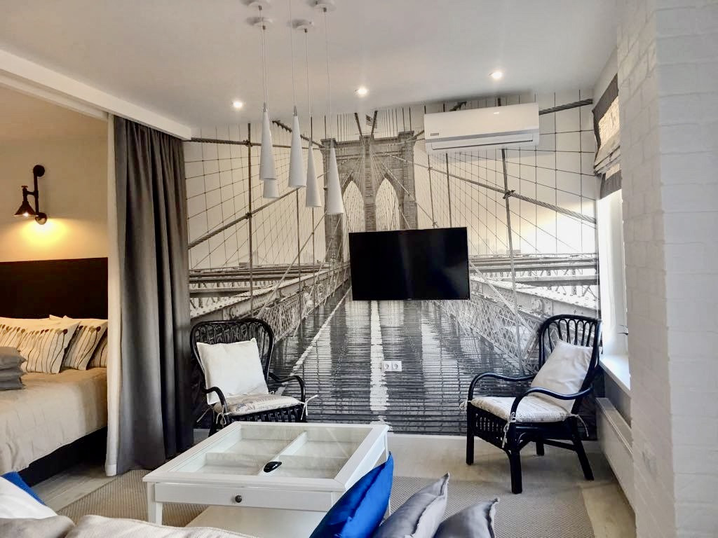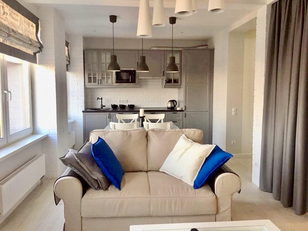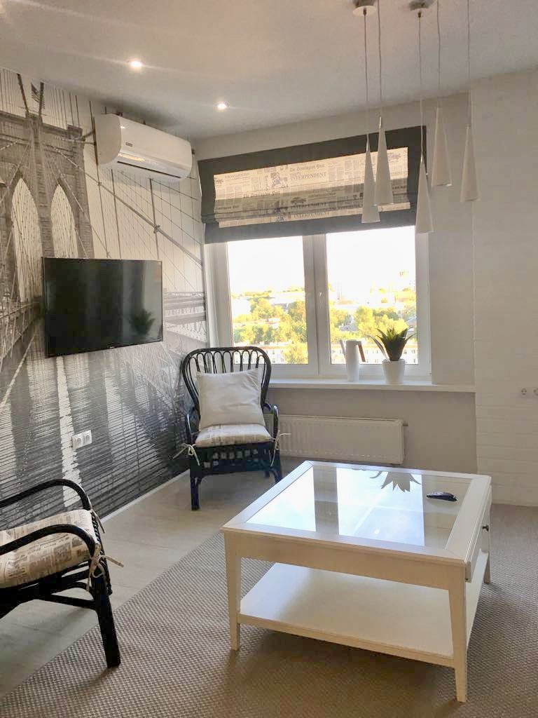 Общая площадь - 60кв.м. Квартира студийного плана. Полностью укомплектована мебелью и техникой. Есть подземная парковка.