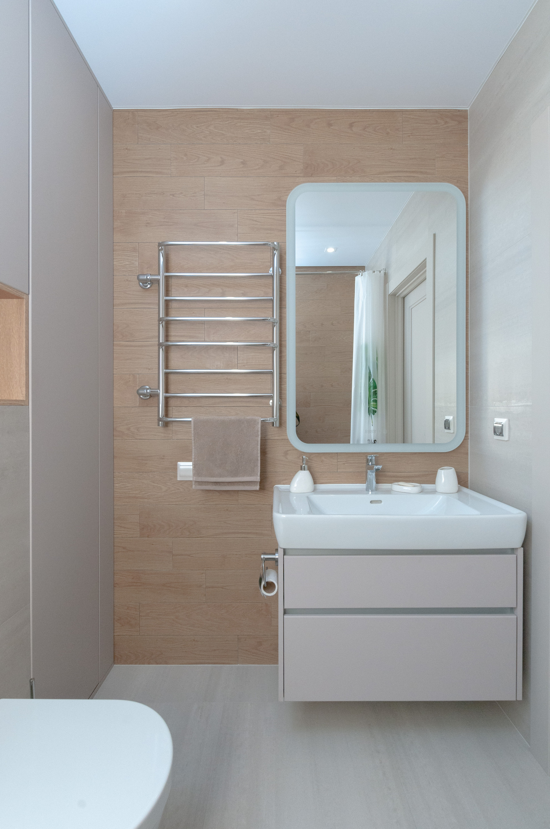 - продуманная система хранения-шкафы: в прихожей, спальне, в ванной комнате;