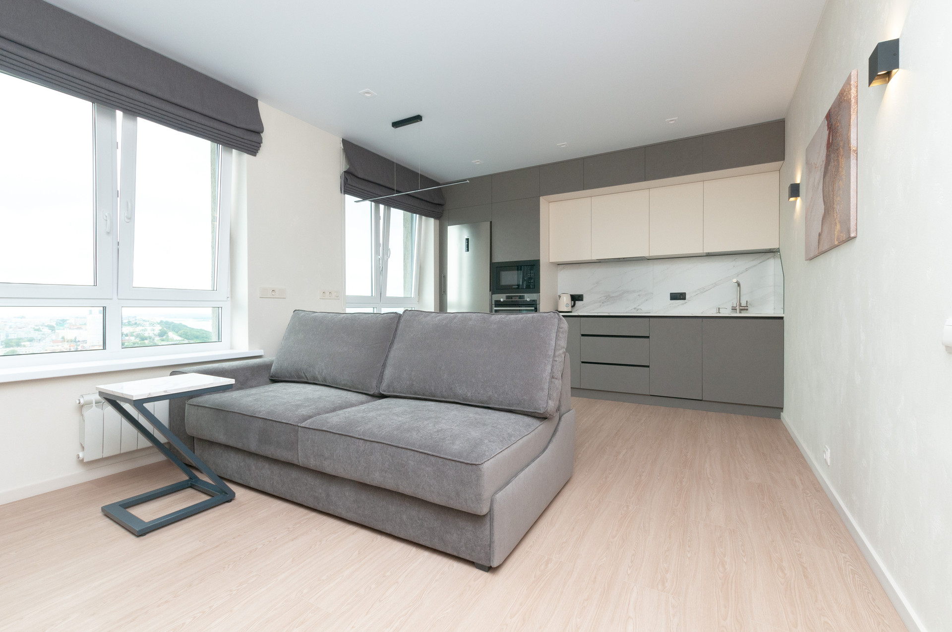 Из окон квартиры, расположенной на 20 этаже открывается завораживающий вид на город. Во дворе также спроектировано пространство для воркаута с турниками, брусьями и скамейками для зарядки по утрам, занятий фитнесом или вечерней разминки.
