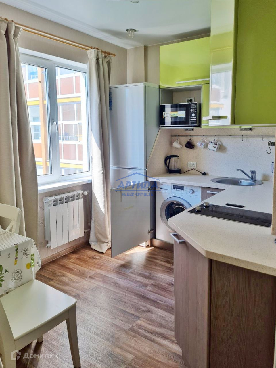 Теплая, светлая и чистая квартира квартира оснащена всей необходимой для жизни мебелью и техникой. Много места для хранения. Планировка студии очень удачная - кухня и комната разграничены, соприкасаются одним углом.