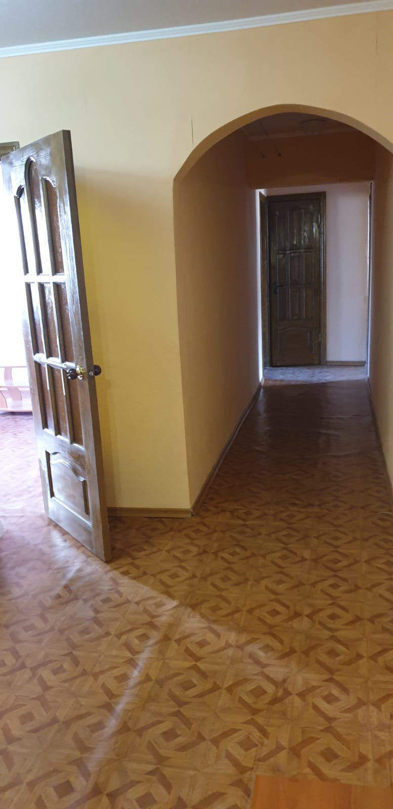 Три изолированных больших комнаты расположены на две стороны, дом расположен в глубине от основной автомагистрали , поэтому в квартире нет шума от транспорта. Квартира на первом этаже, но этаж высокий. Независимость от лифта это преимущество первого этажа.