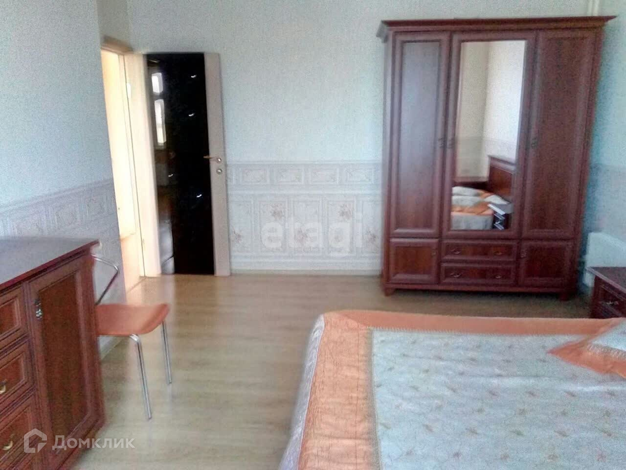 В спальных комнатах также есть вся нужная мебель: большая кровать, диван, объемные шкафы для хранения.