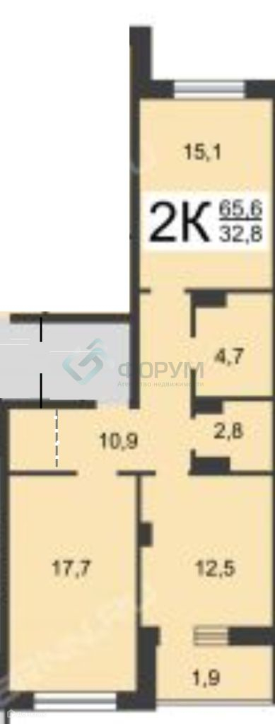 Жилая площадь 32.5 м2