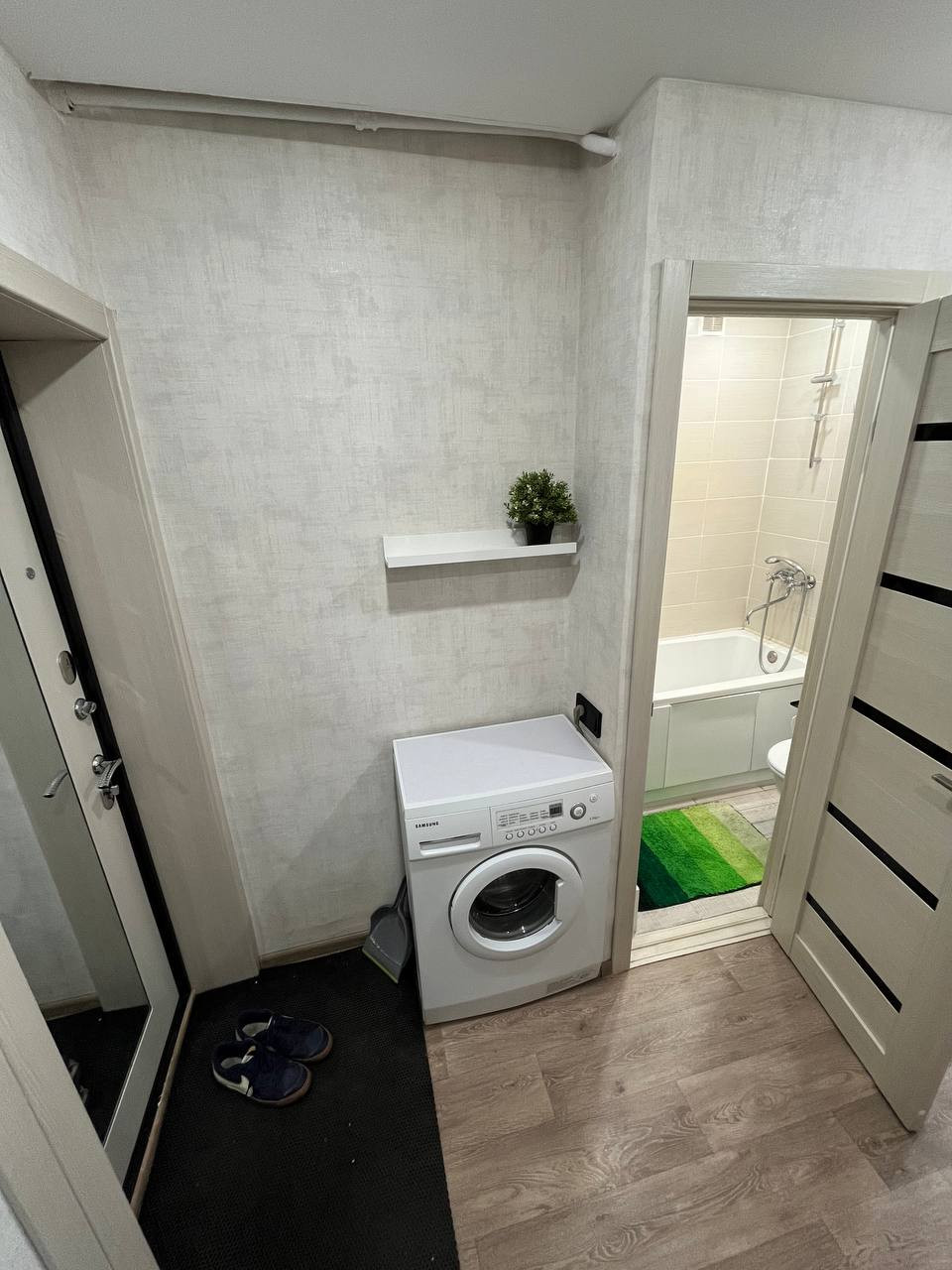 Из мебели присутствует: кухонный гарнитур, кухонный стол, стиральная машина-автомат,
