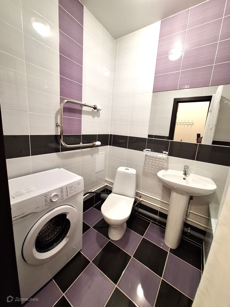 Просторная лоджия. Санузел совмещенный в кафеле.