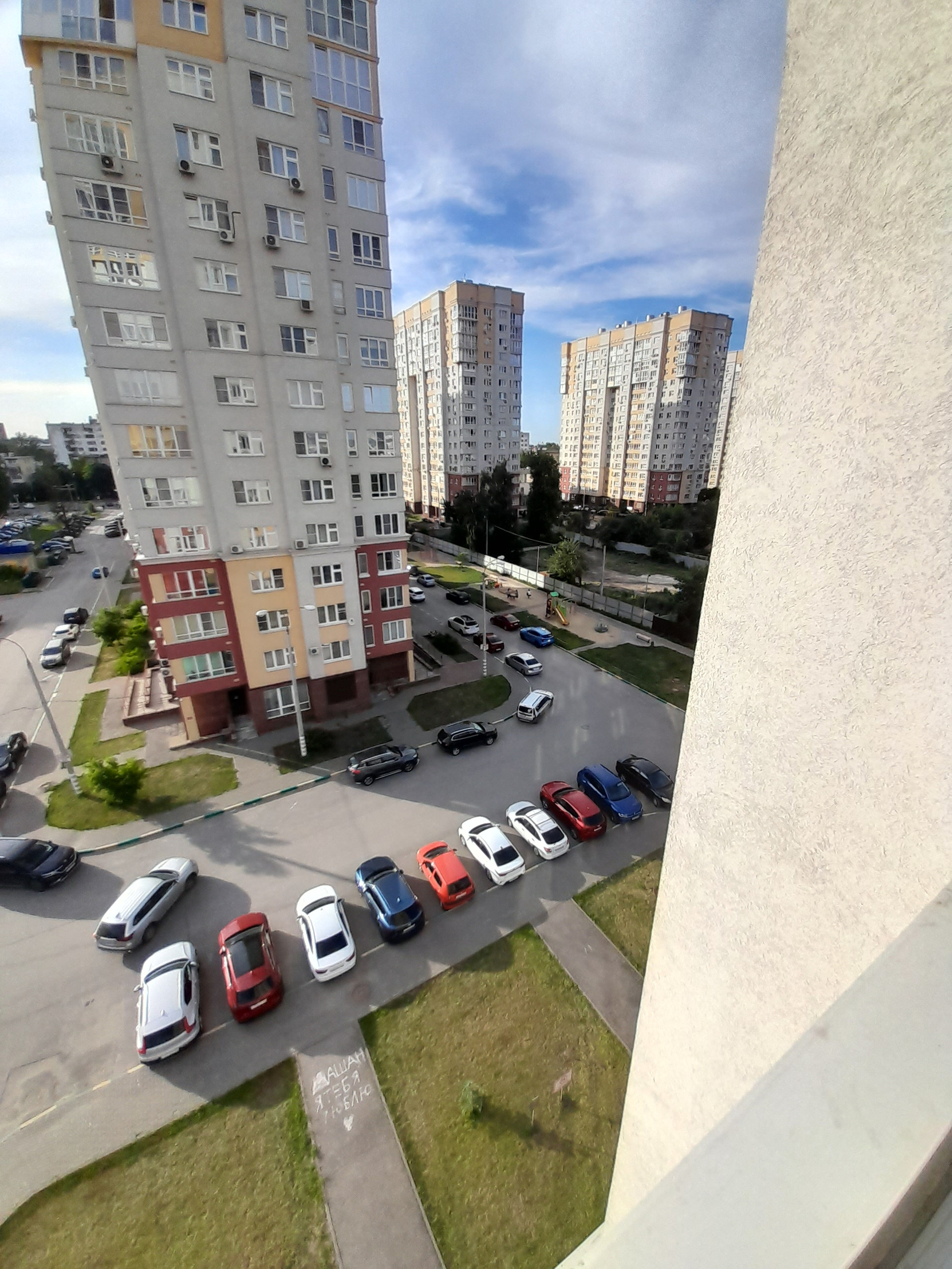 Территория жилого комплекса за шлагбаумами. Парковочных мест хватает.
