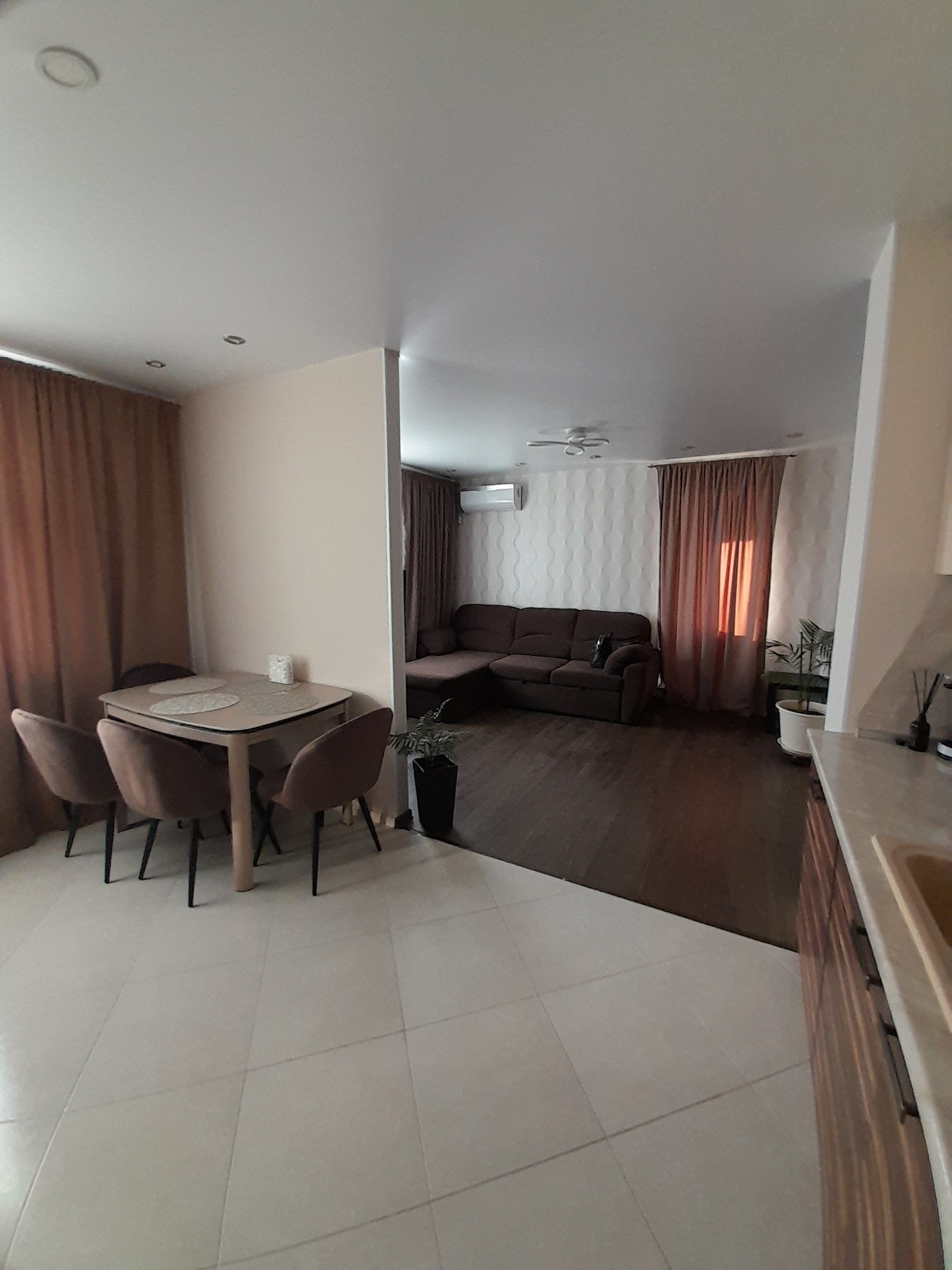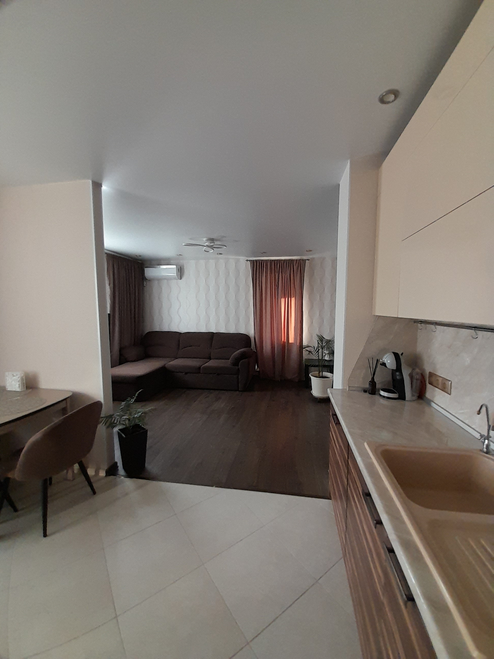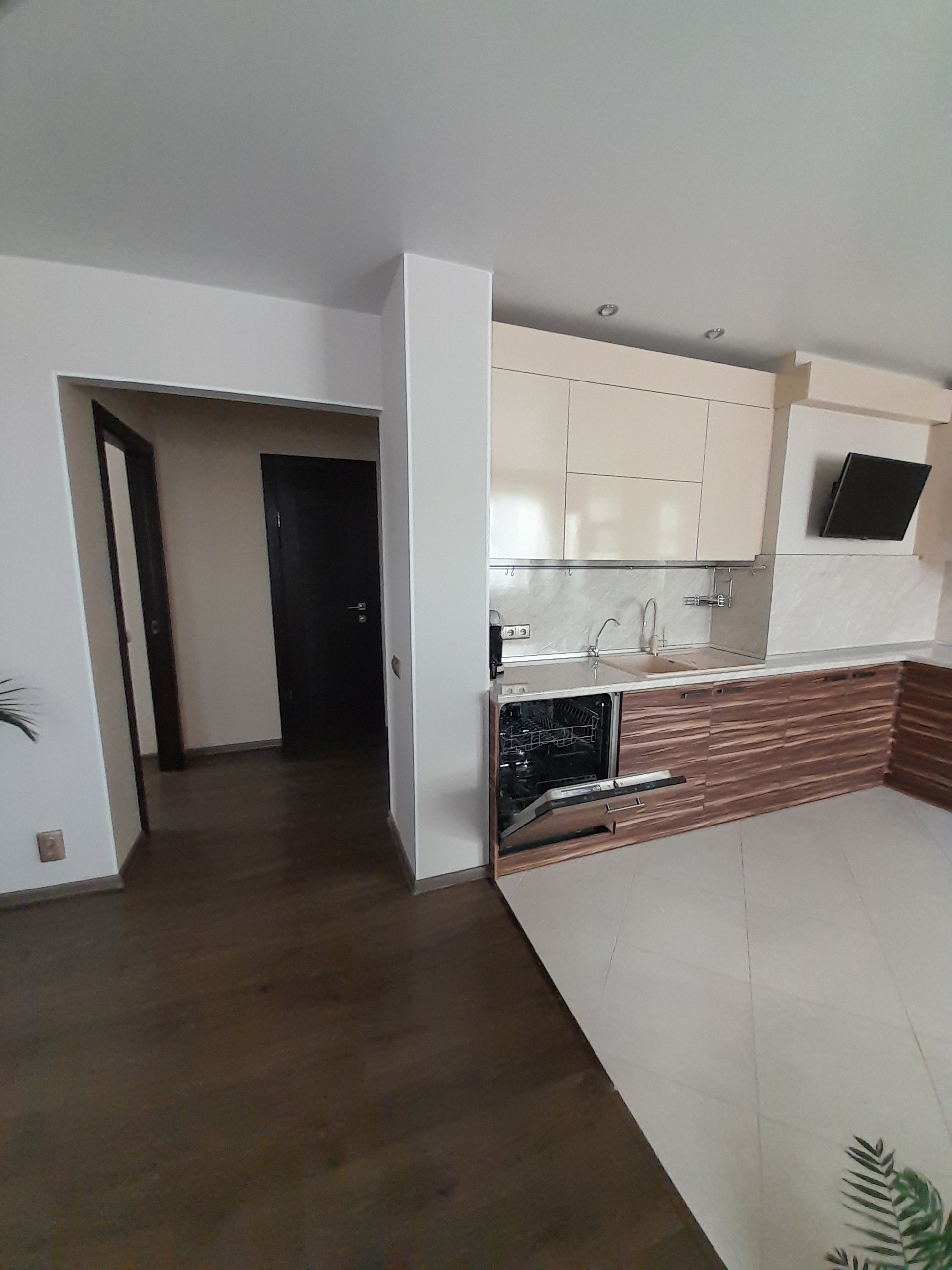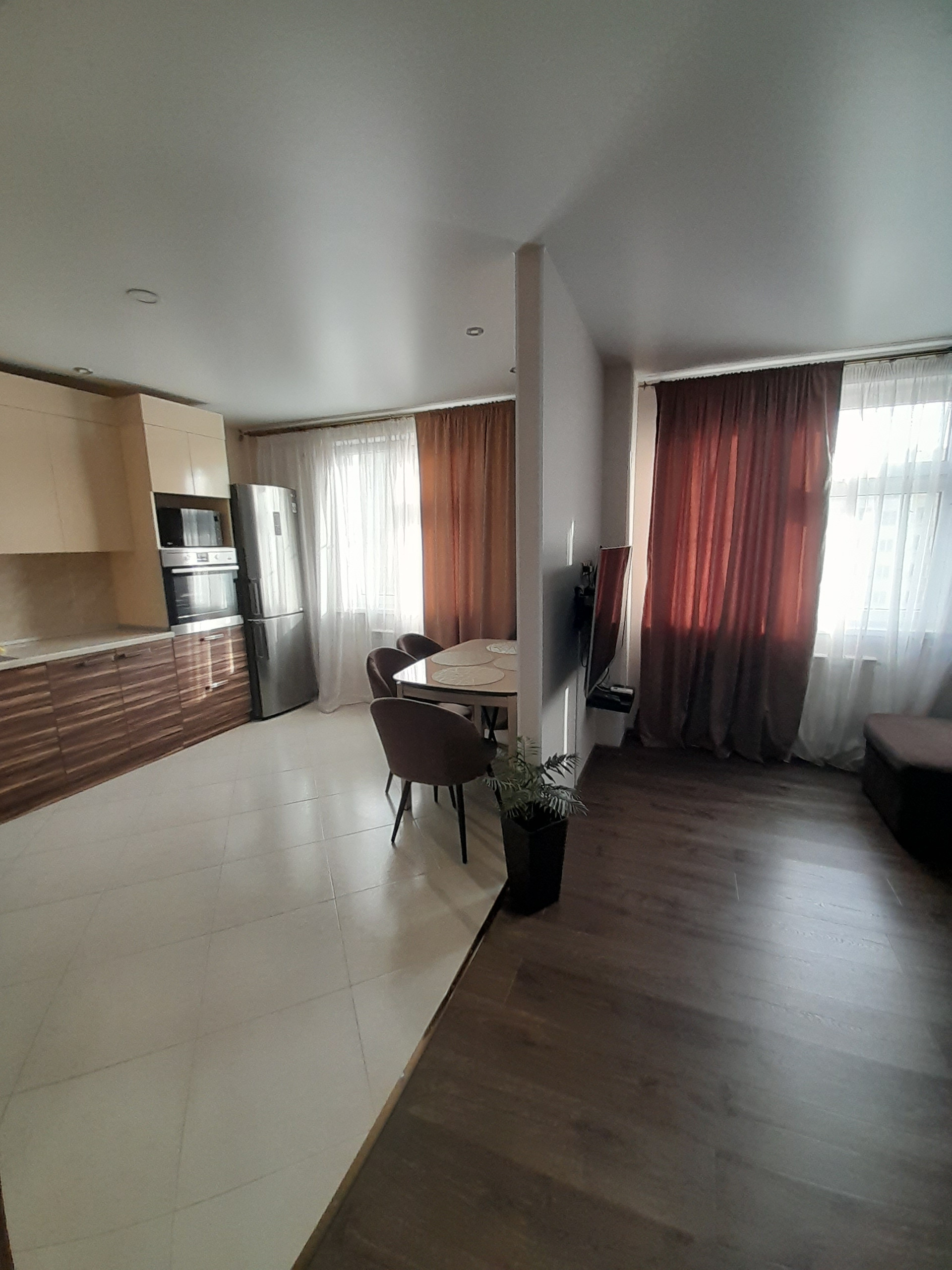 Квартира с отличным ремонтом,, перегородка убрана и теперь это просторная еврооднушка с кухней-гостиной 27 м.кв и спальней 17 м.кв.