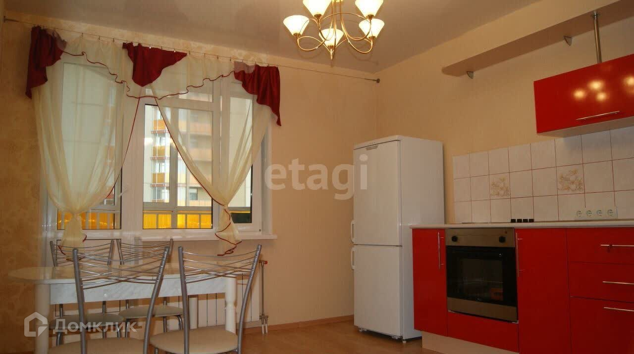 Квартира в отличном состоянии, сделан косметический ремонт. Она полностью меблирована и оснащена бытовой техникой, в том числе: холодильником, стиральной машиной, плитой, кухонным гарнитуром, столом и стульями, кроватью, диваном, шкафом для хранения.